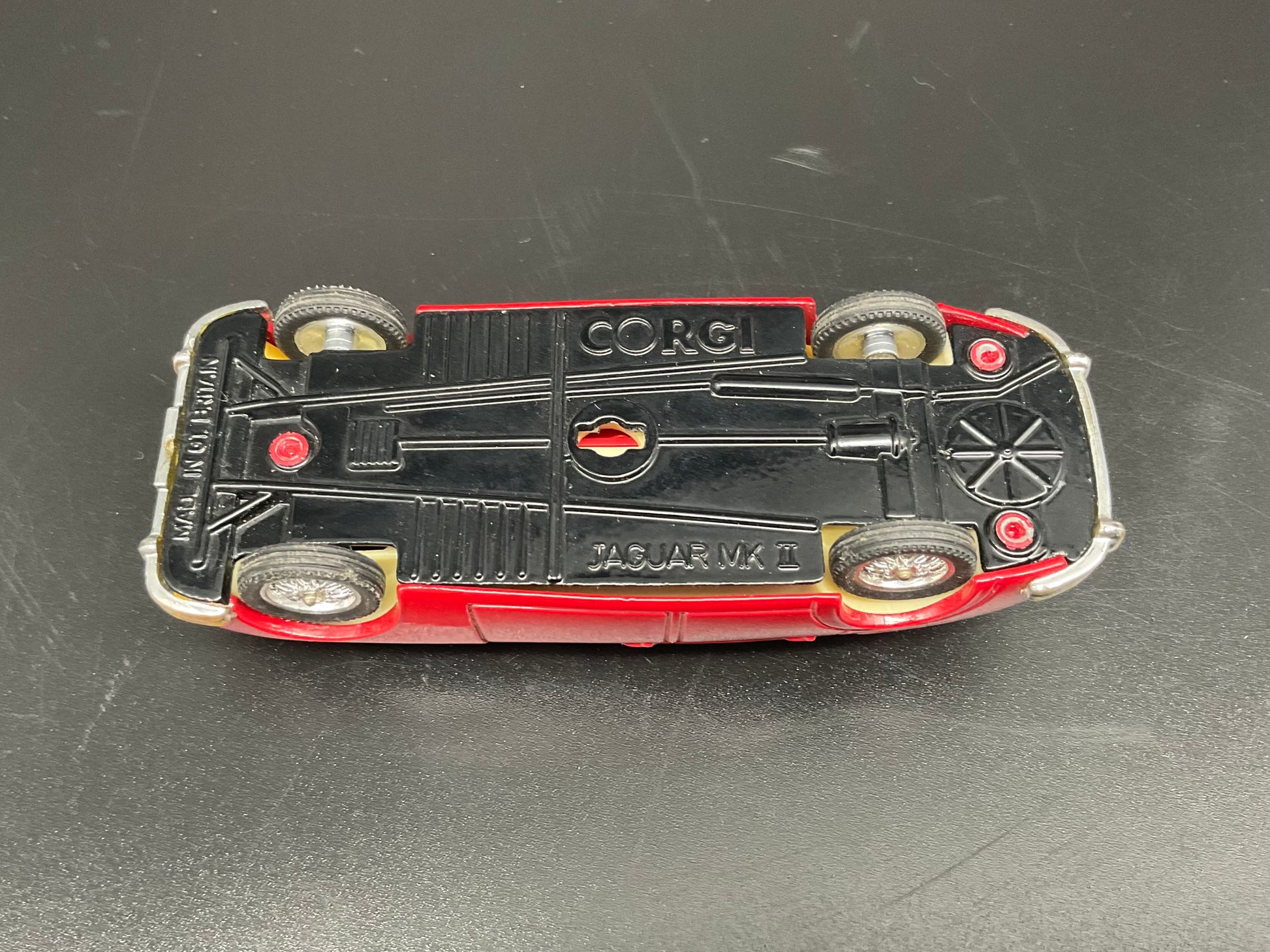 Es handelt sich hierbei um ein CORGI Jaguar MK ll in der Farbe rot. Das Modellauto ist gebraucht und weist Gebrauchsspuren auf. Zustand entsprechend den Bildern.