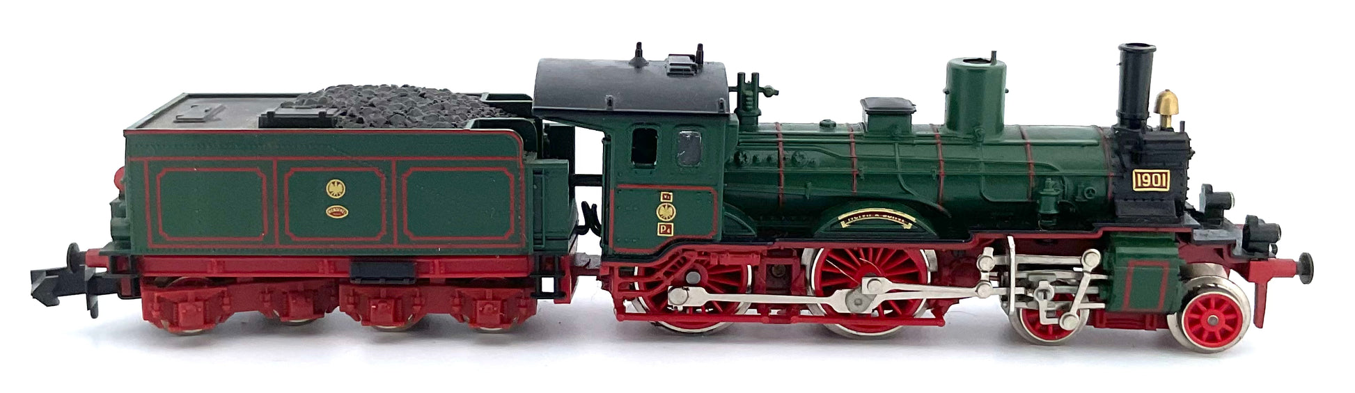 Aus einem Nachlass verkaufen wir diese Dampflok von Arnold in Originalverpackung, jedoch gebraucht mit leichten Gebrauchsspuren. Die Funktion der Lok wurde nicht überprüft. Bilder sind Bestandteil der Beschreibung.