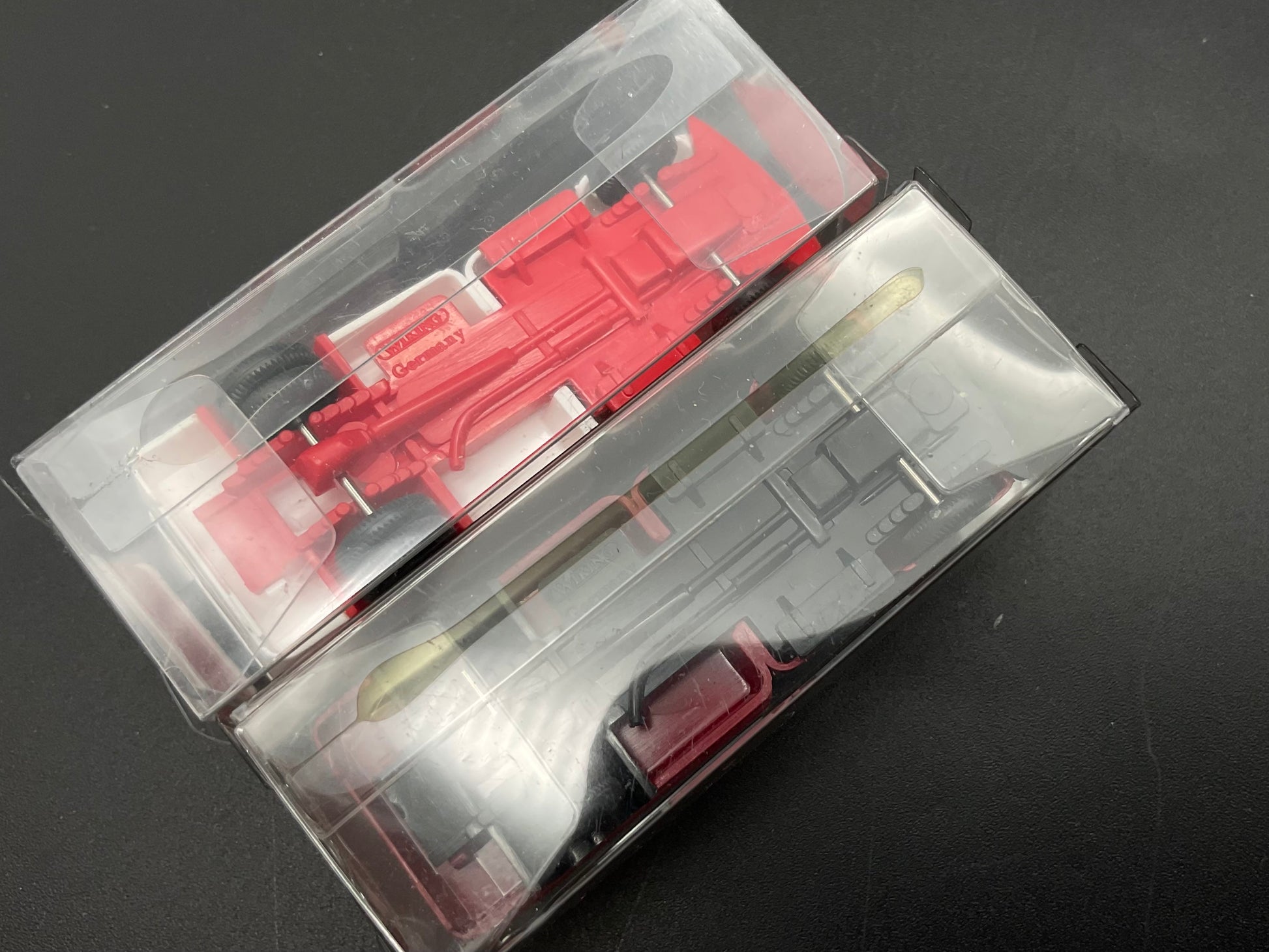 Es handelt sich hierbei um ein Kasten-LKW mit der Modellnummer 0345 53 und um zwei weitere Kasten-LKW in Rot und Rot/weiß. Das Fahrzeugset ist Original von Wiking und gebraucht. Daher weist es kleine Gebrauchsspuren auf. Zustand entsprechend den Bilder und die Bilder dienen der Beschreibung.