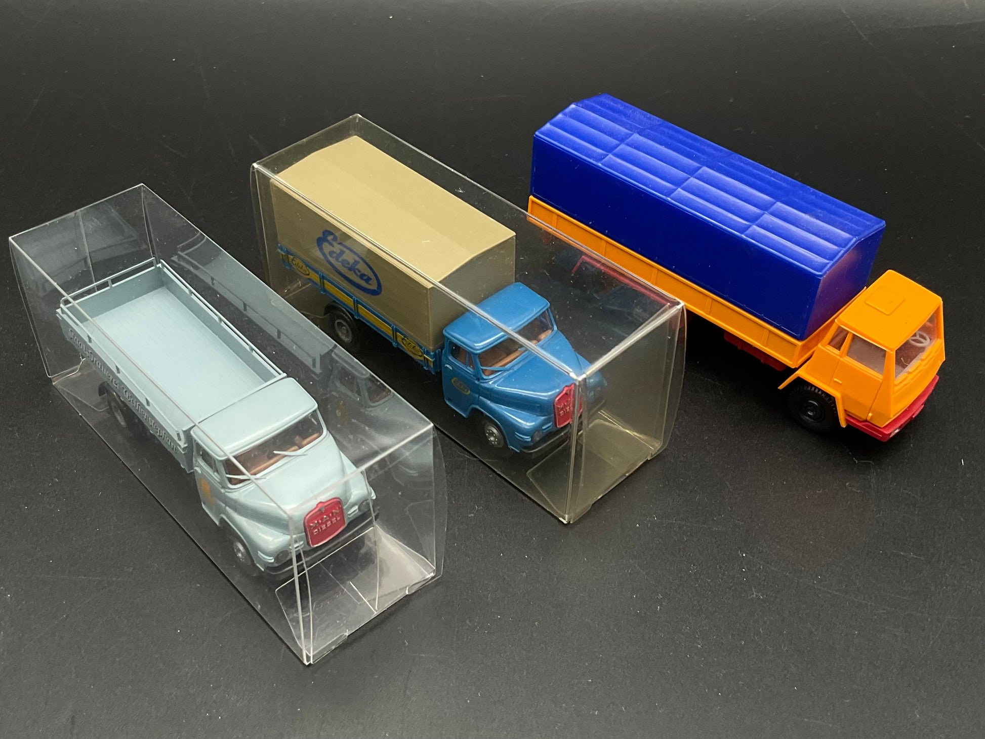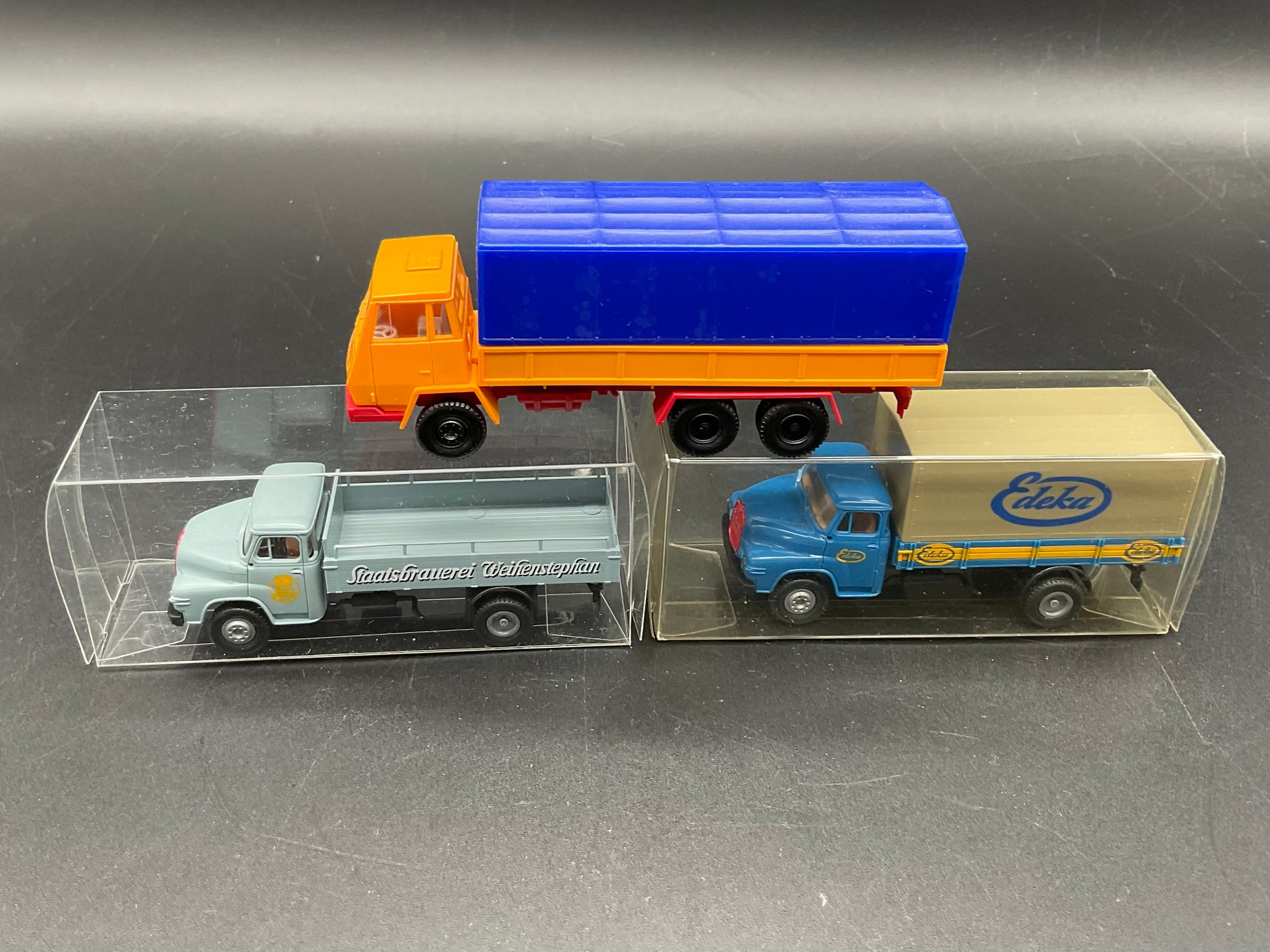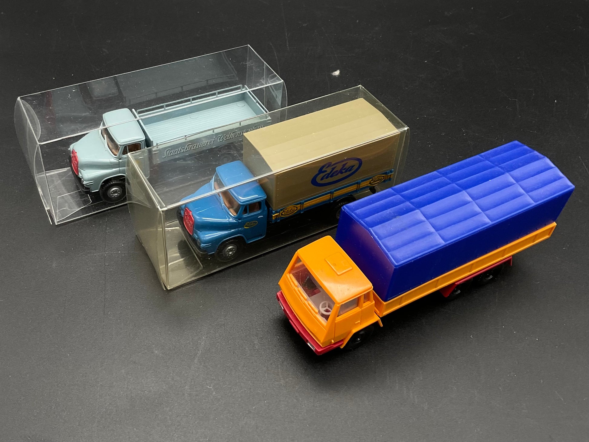 Es handelt sich hierbei um drei Modellfahrzeuge. Die Modellfahrzeuge lassen sich nicht einer Firma zuordnen. Die Modellfahrzeuge sind gebraucht. Daher weisen sie leichte Gebrauchsspuren auf. Zustand entsprechend den Bildern und die Bilder dienen der Beschreibung.