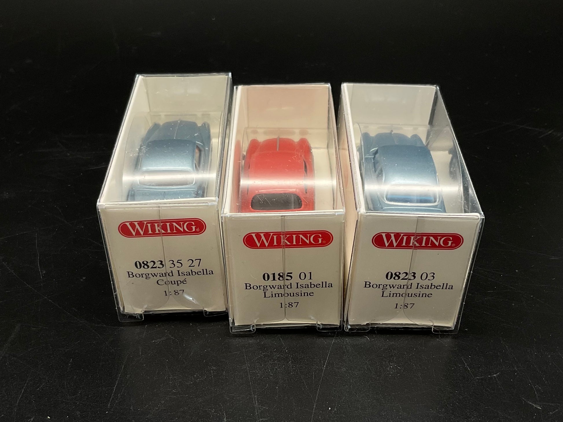 Es handelt sich hierbei um eine Borgward Isabella Limousine mit der Modellnummer 0185 01, um eine Borgward Isabella Limousine mit der Modellnummer 0823 03 und einmal um ein Borgward Isabella Coupé mit der Modellnummer 0823 35 27. Das Fahrzeugset ist Original von Wiking und gebraucht. Daher weist es kleine Gebrauchsspuren auf. Zustand entsprechend den Bilder und die Bilder dienen der Beschreibung.