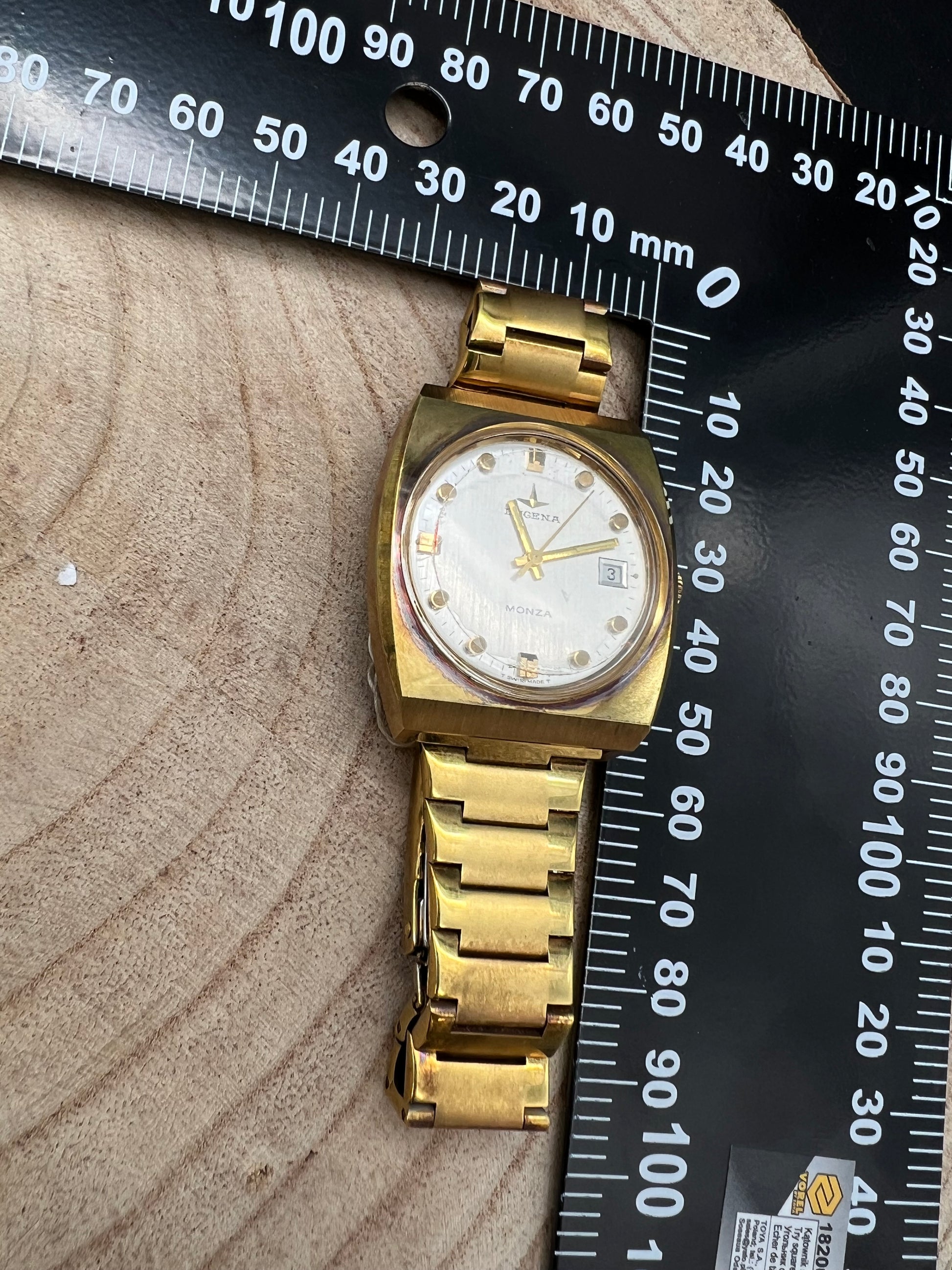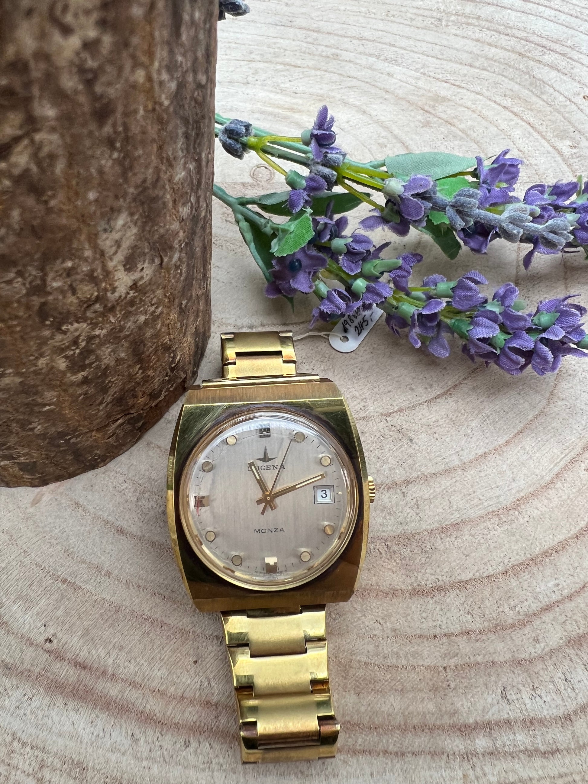 Wir verkaufen im Auftrag aus einem Nachlass eine Dugena Uhr. Die Uhr hat ein goldenes Gehäuse wie ein goldenes Armband und ein helles Ziffernblatt. Sie ist gebraucht und nicht auf Funktionsfähigkeit überprüft.