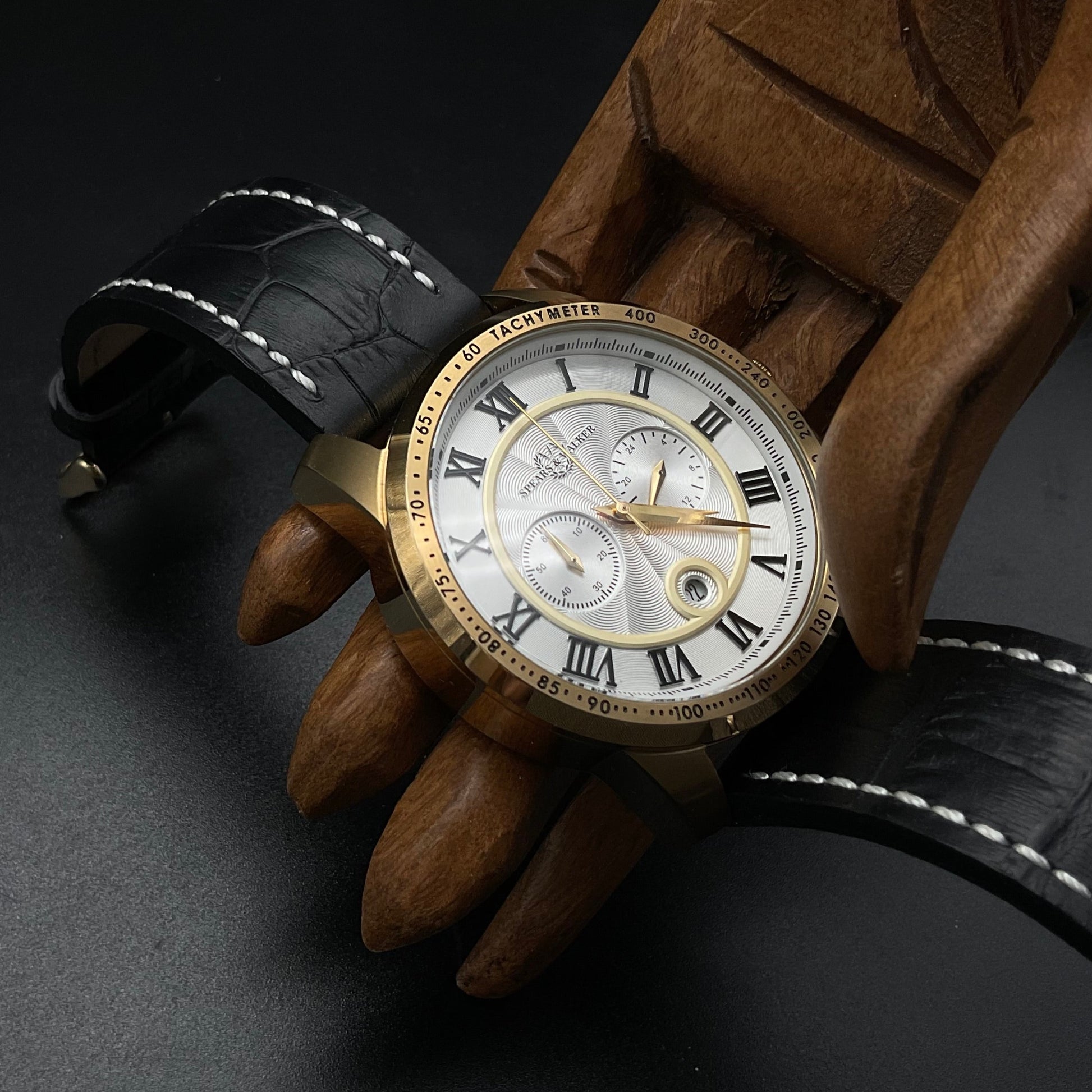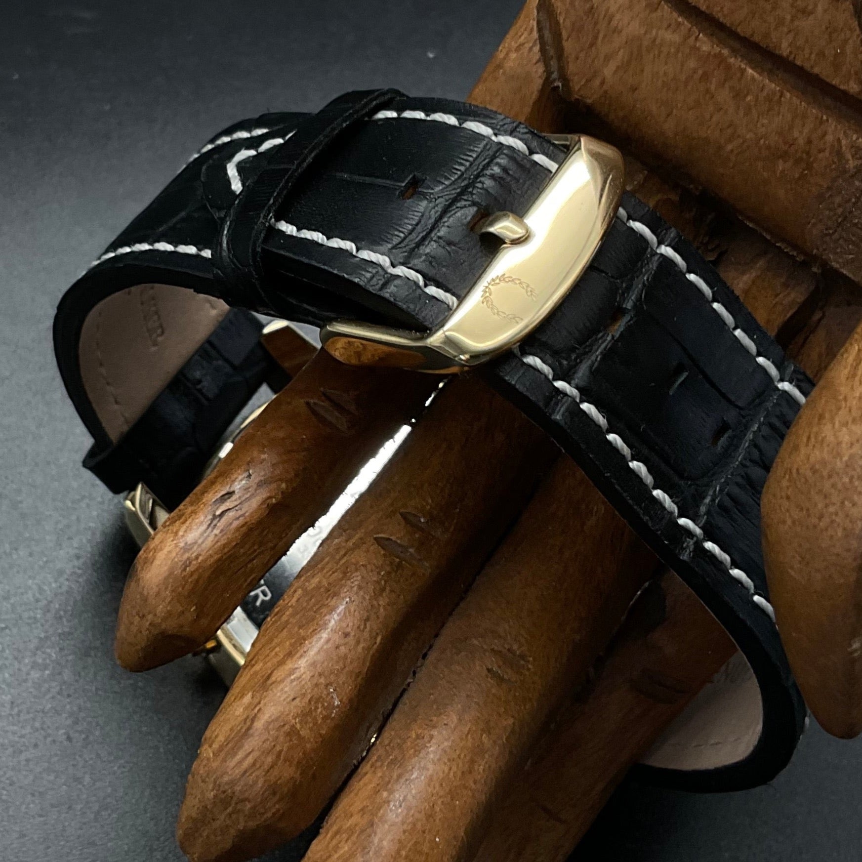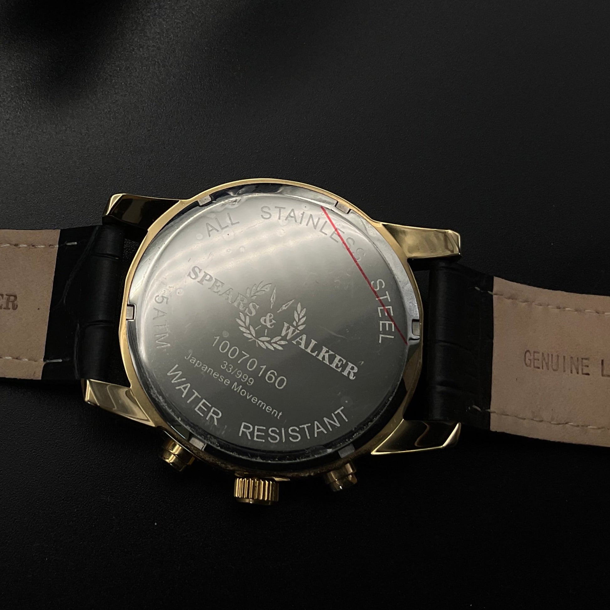 Die Uhr ist Gold und hat ein Lederarmband. Die Bilder dienen zur Beschreibung. Sie ist gebraucht und ihre Funktionsfähigkeit wurde nicht geprüft.