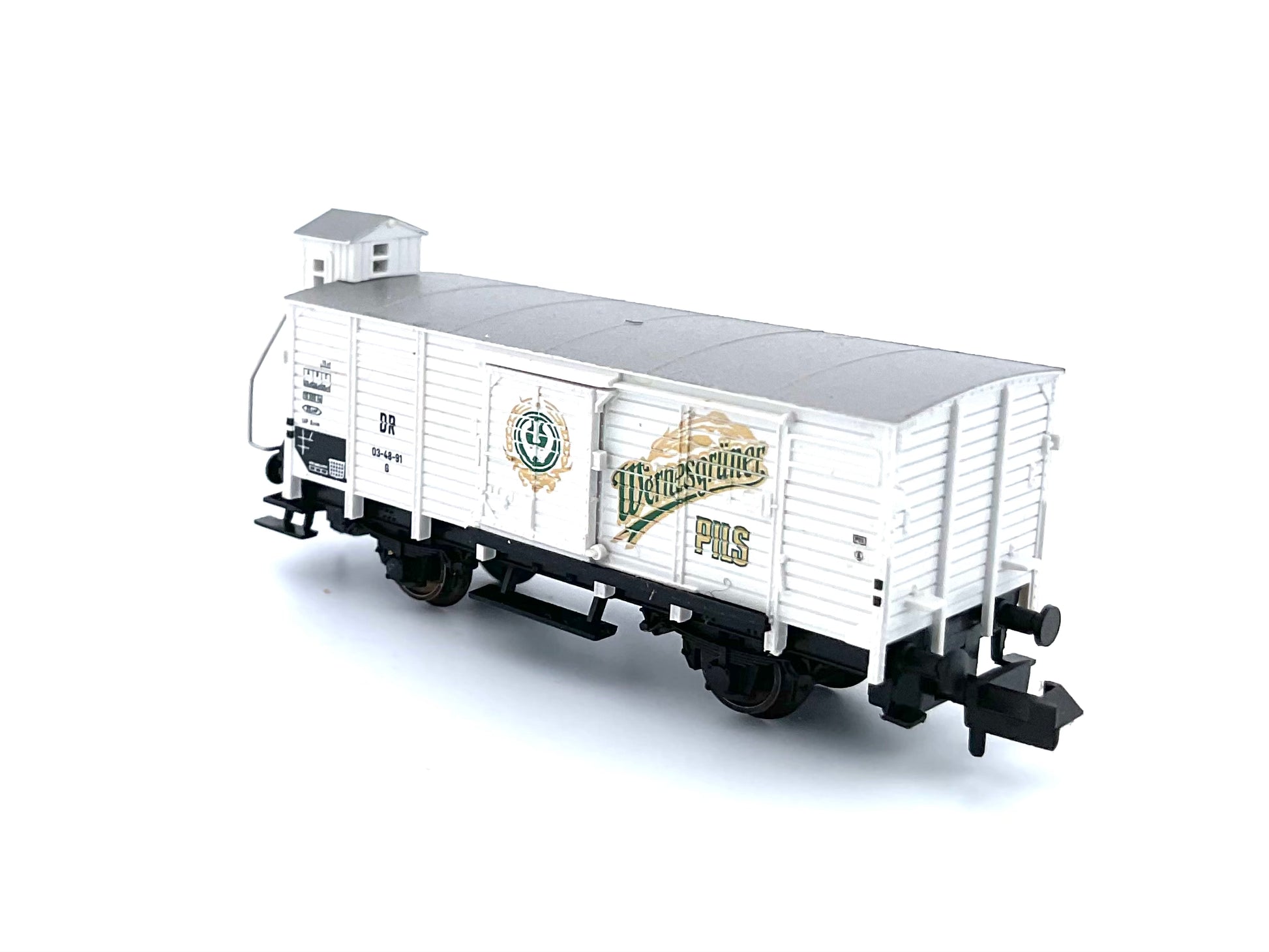 Aus einem Nachlass verkaufen wir diesen Güterwagen von Fleischmann in Originalverpackung, jedoch gebraucht mit leichten Gebrauchsspuren. Bilder sind Bestandteil der Beschreibung.