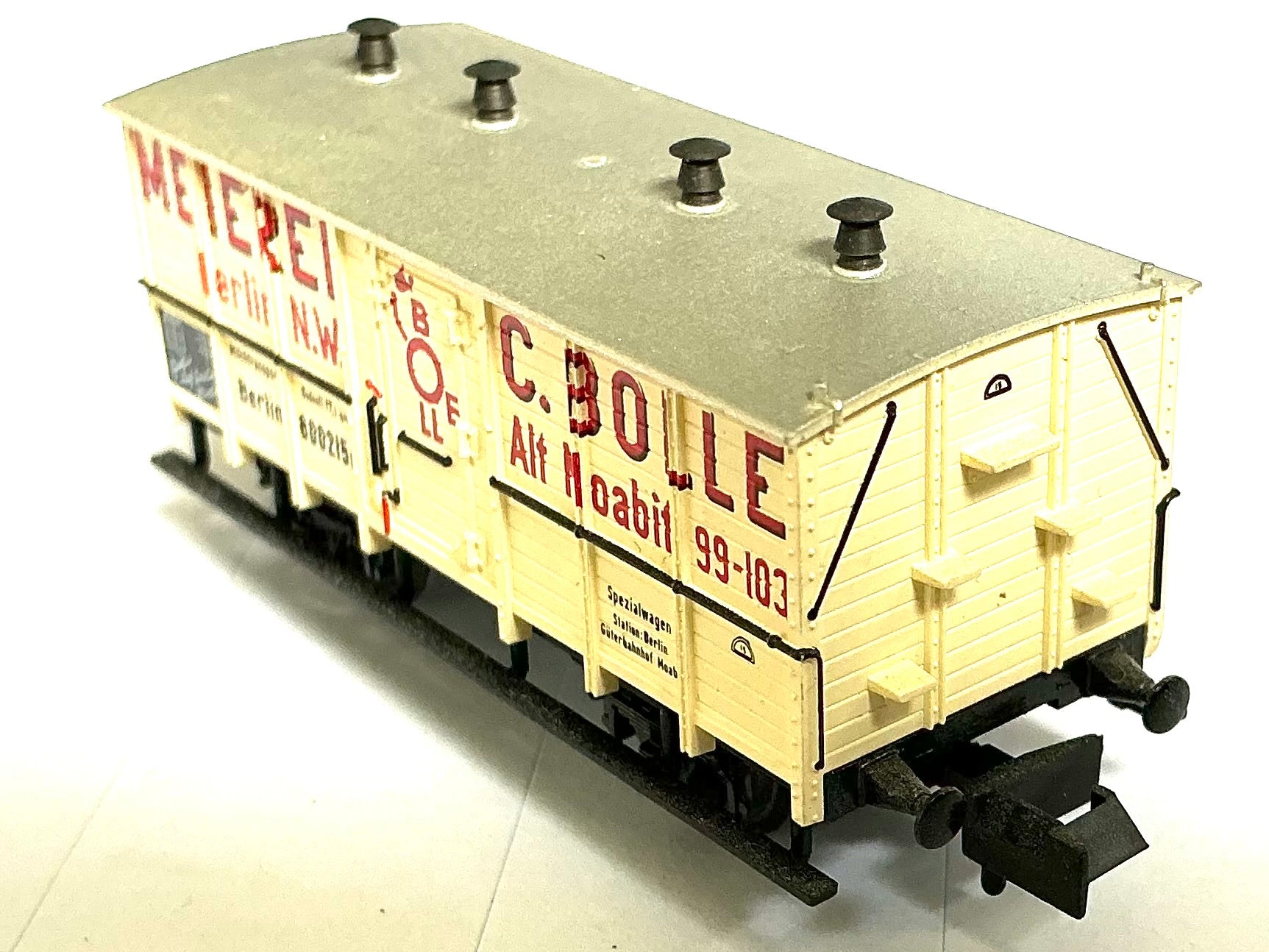 Aus einem Nachlass verkaufen wir diesen Güterwagen von Minitrix in Originalverpackung, jedoch gebraucht mit leichten Gebrauchsspuren. Bilder sind Bestandteil der Beschreibung.