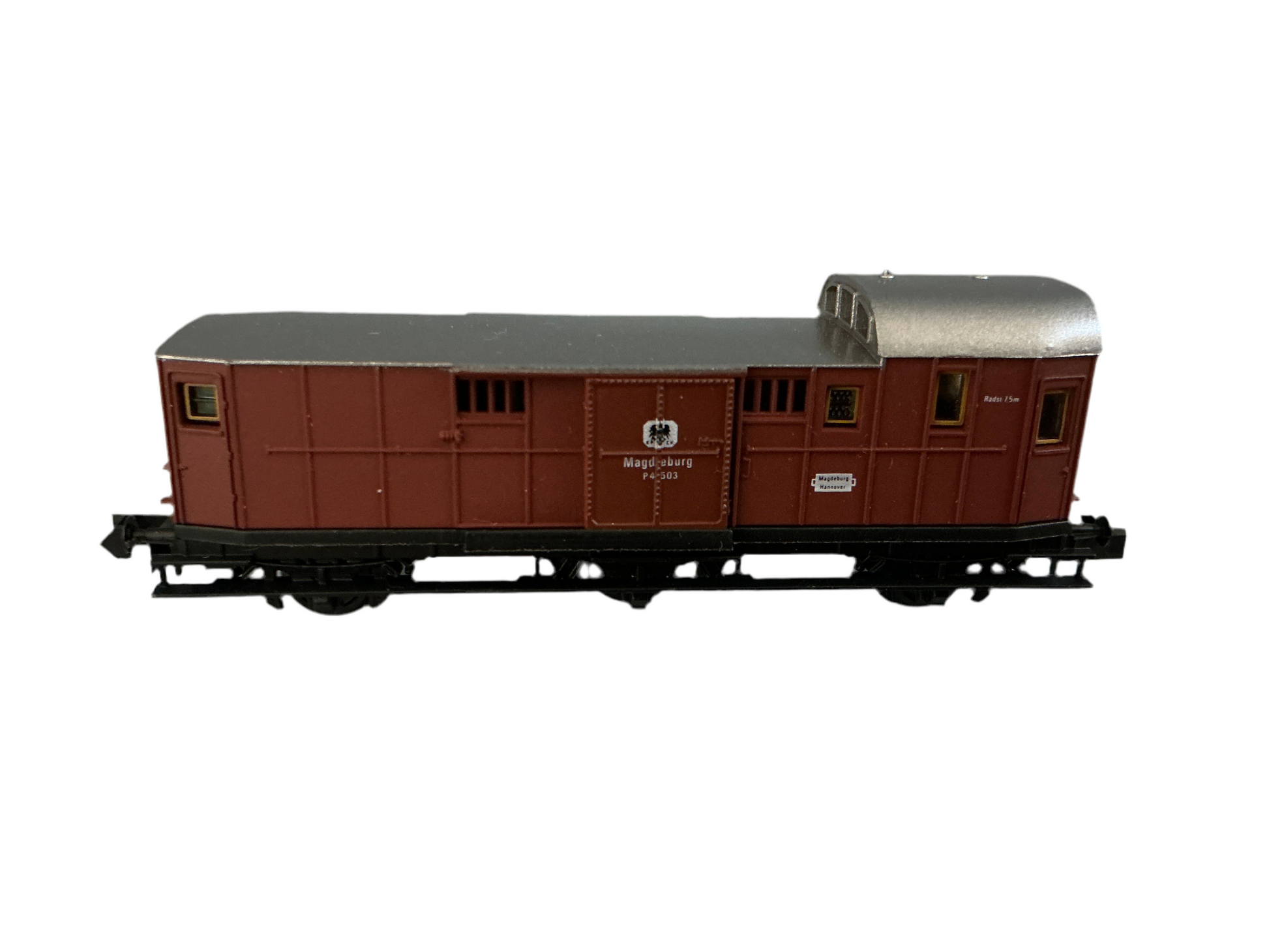 Aus einem Nachlass verkaufen wir diesen Güterwagen von Arnold in Originalverpackung, jedoch gebraucht mit leichten Gebrauchsspuren. Bilder sind Bestandteil der Beschreibung.
