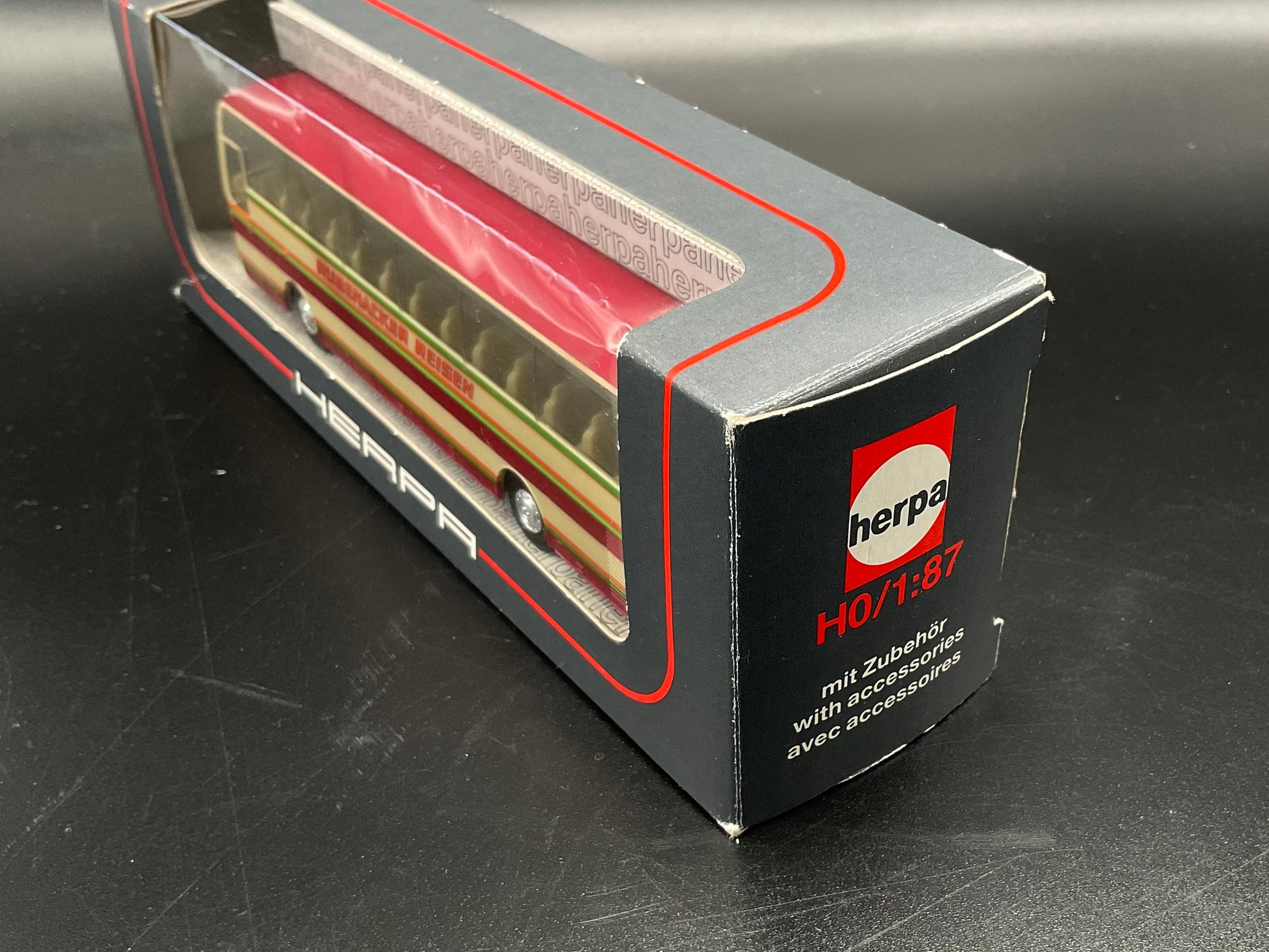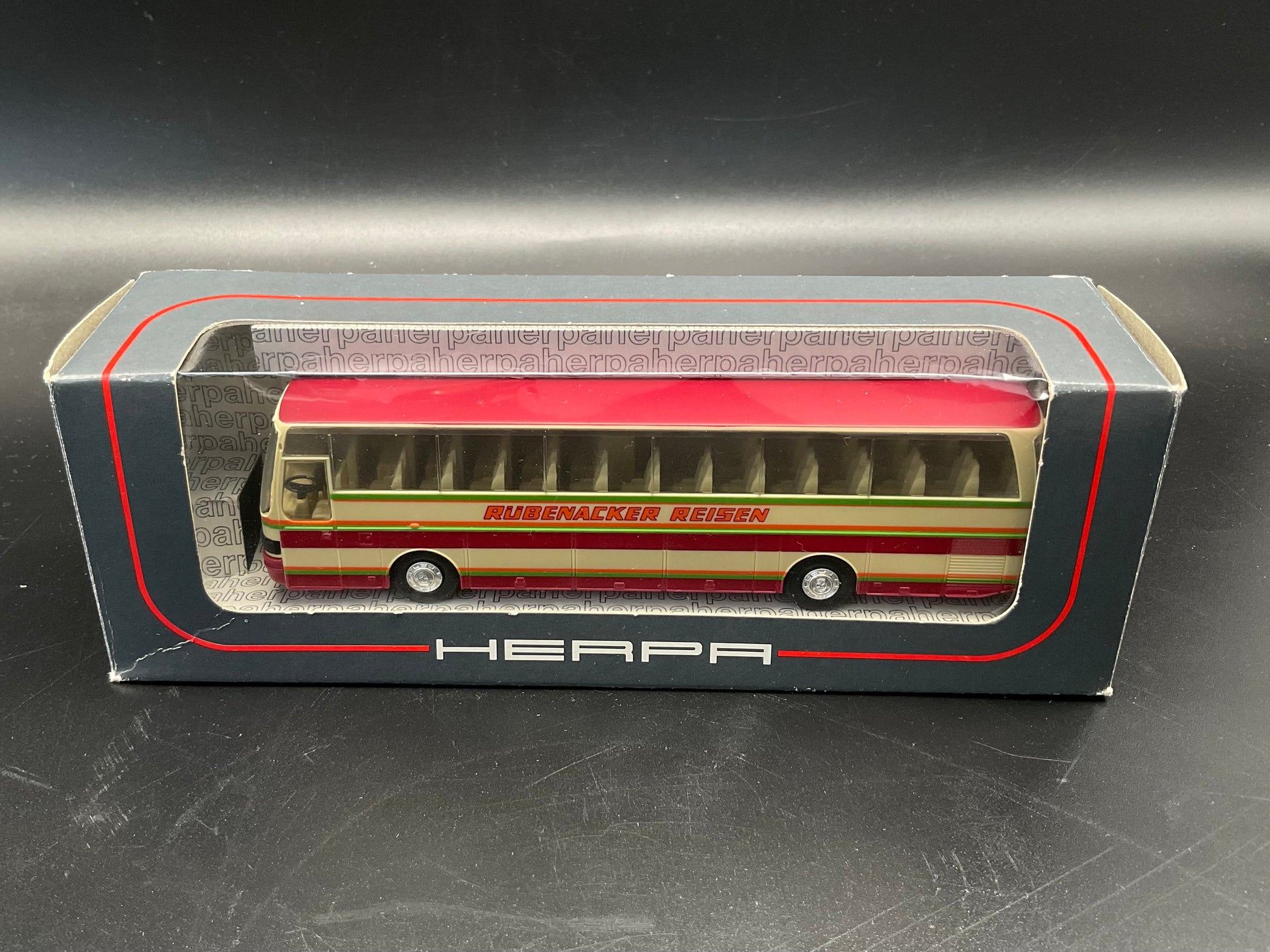 Es handelt sich hierbei um einmal ein Reisebus von Rübenacker. Das Modellfahrzeug ist Original von Herpa und gebraucht. Es weist daher Gebrauchsspuren auf. Zustand entsprechend den Bildern und die Bilder dienen der Beschreibung.