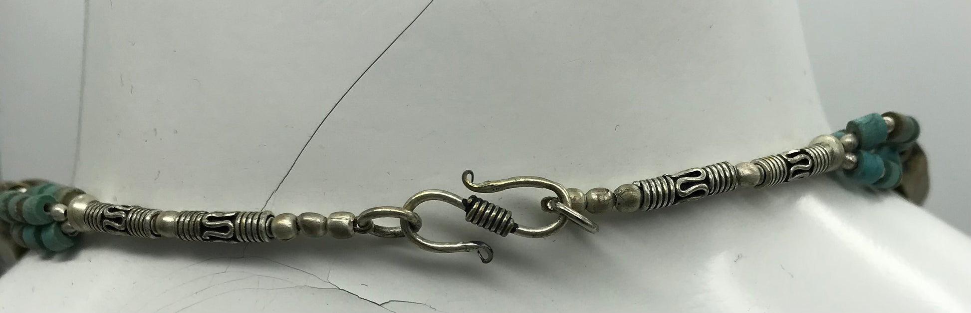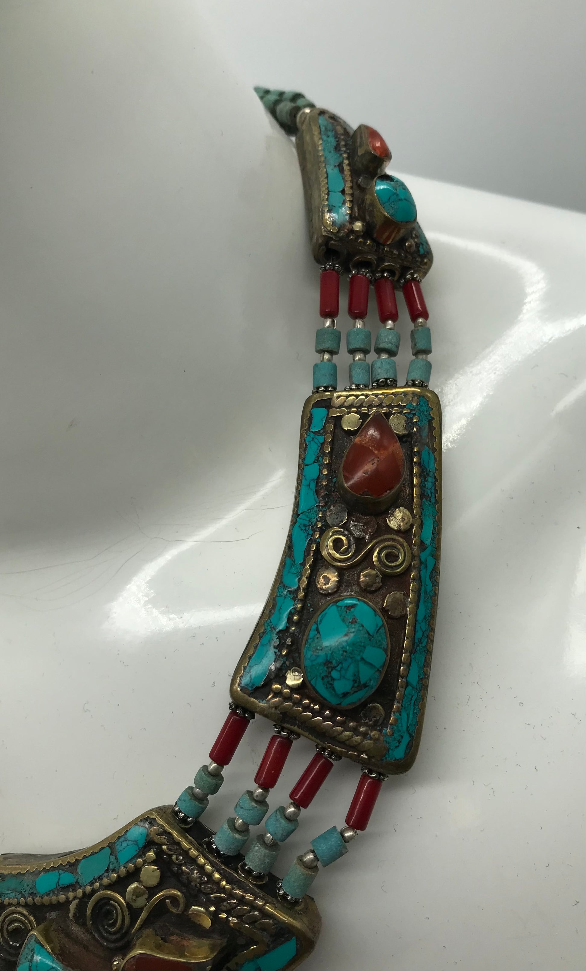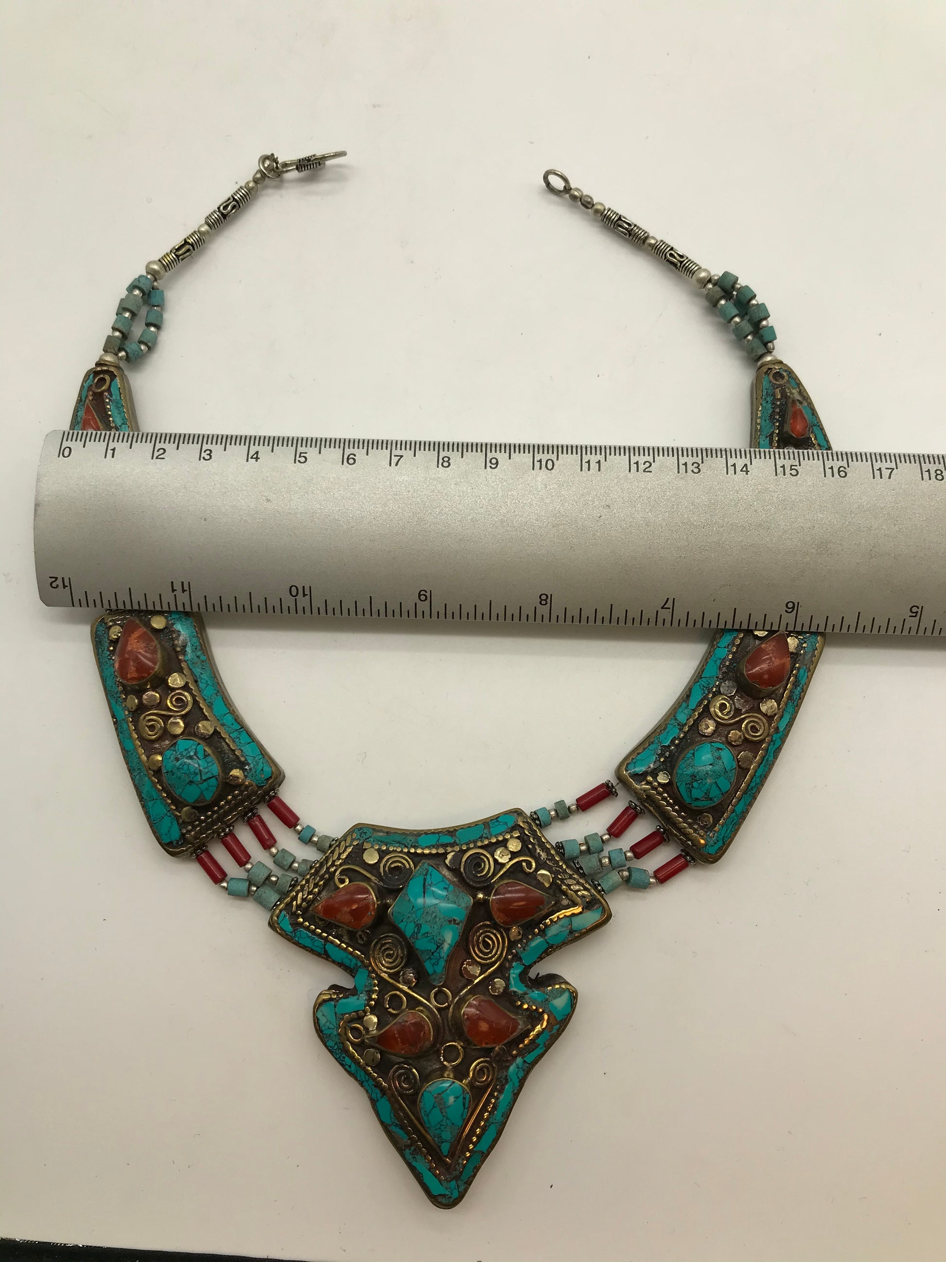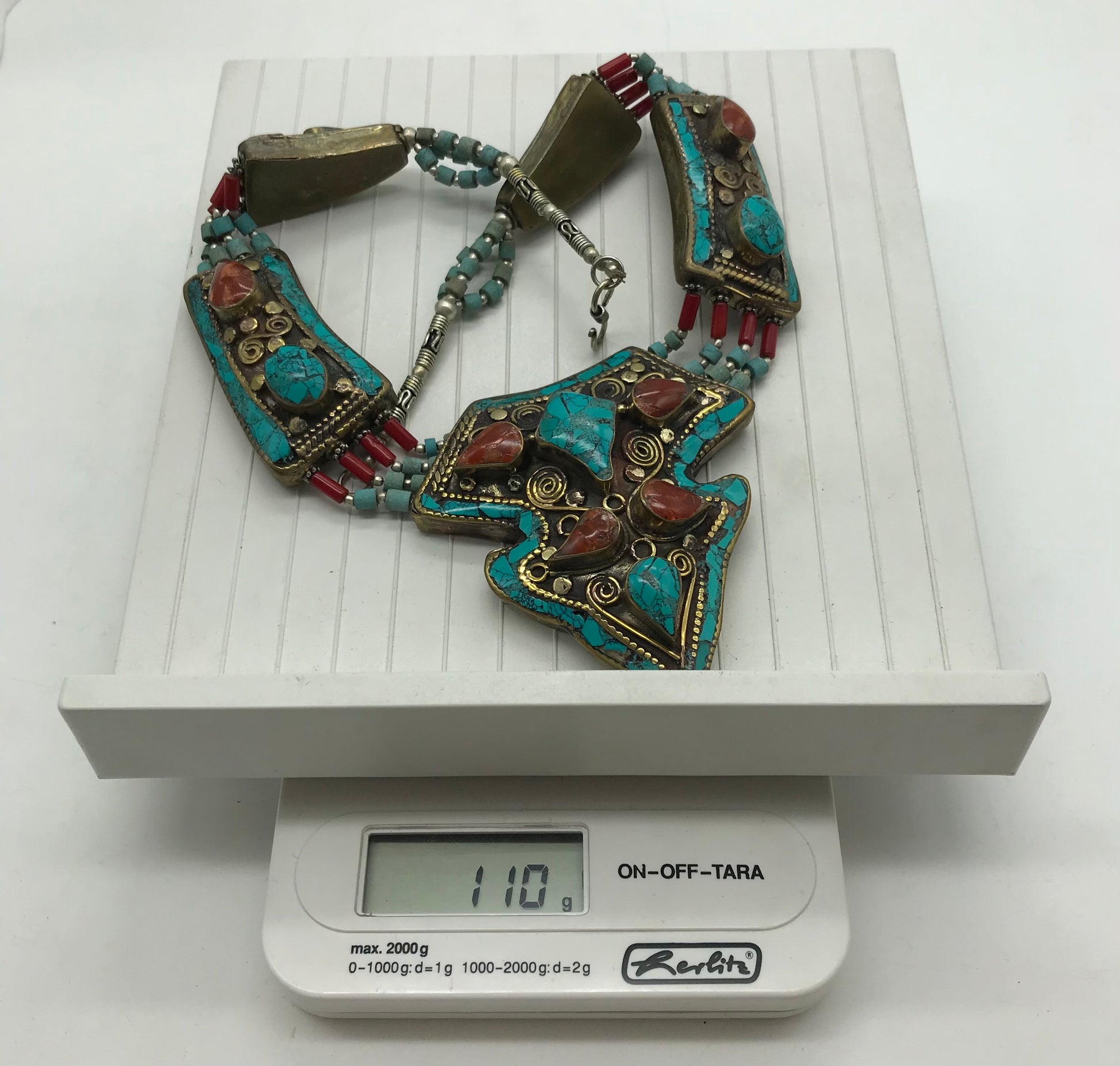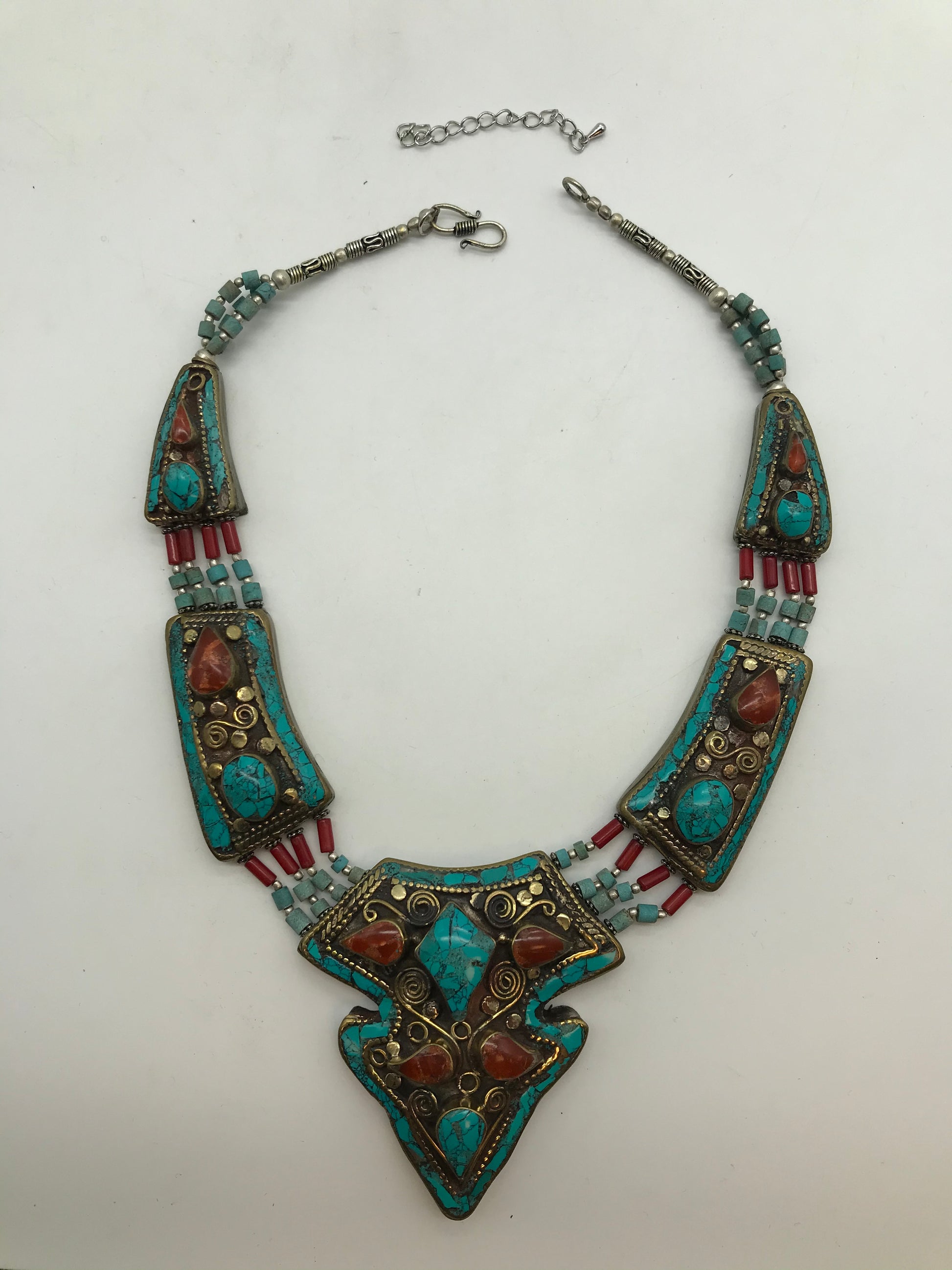 Statement Kette, Modeschmuck, türkis, gold und rotfarbend