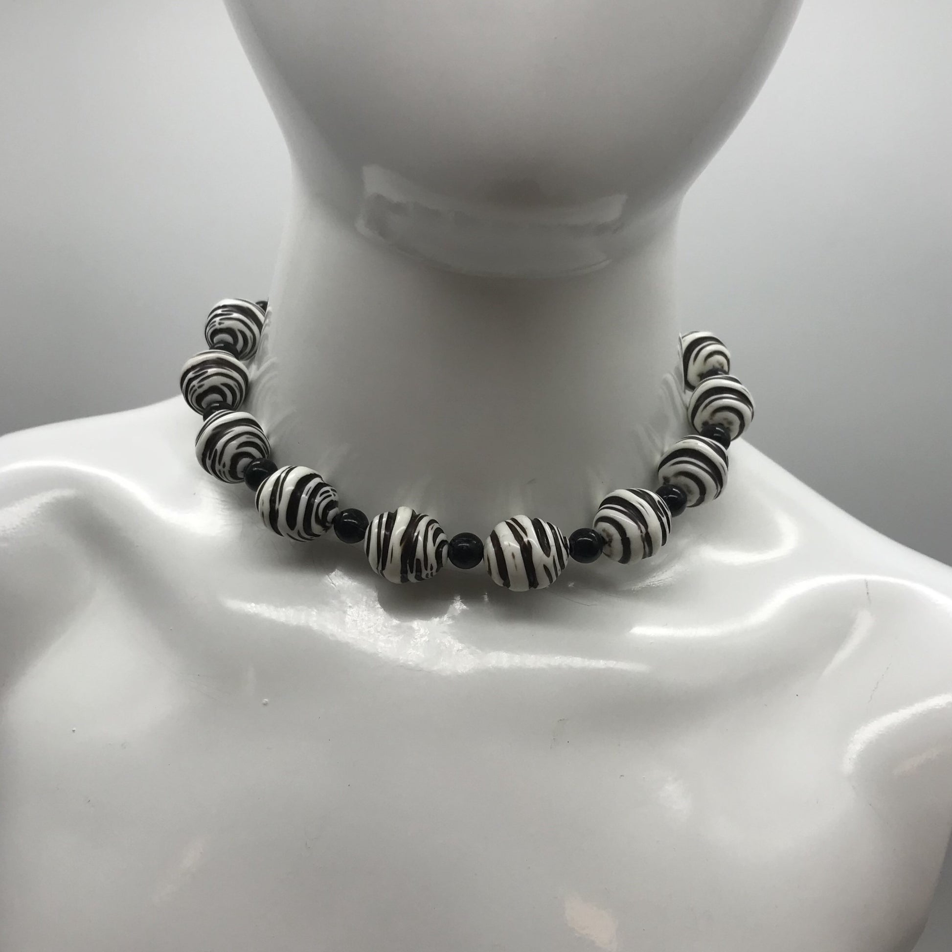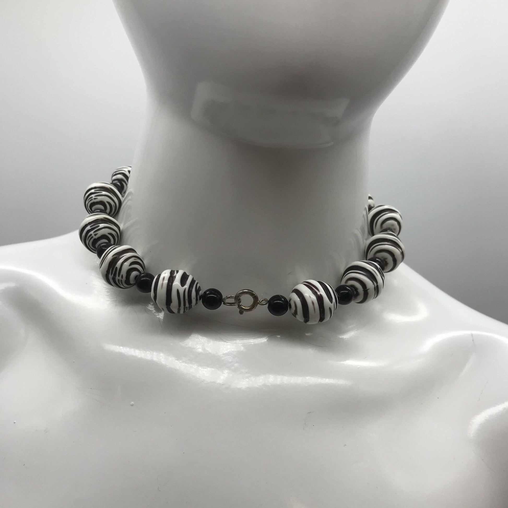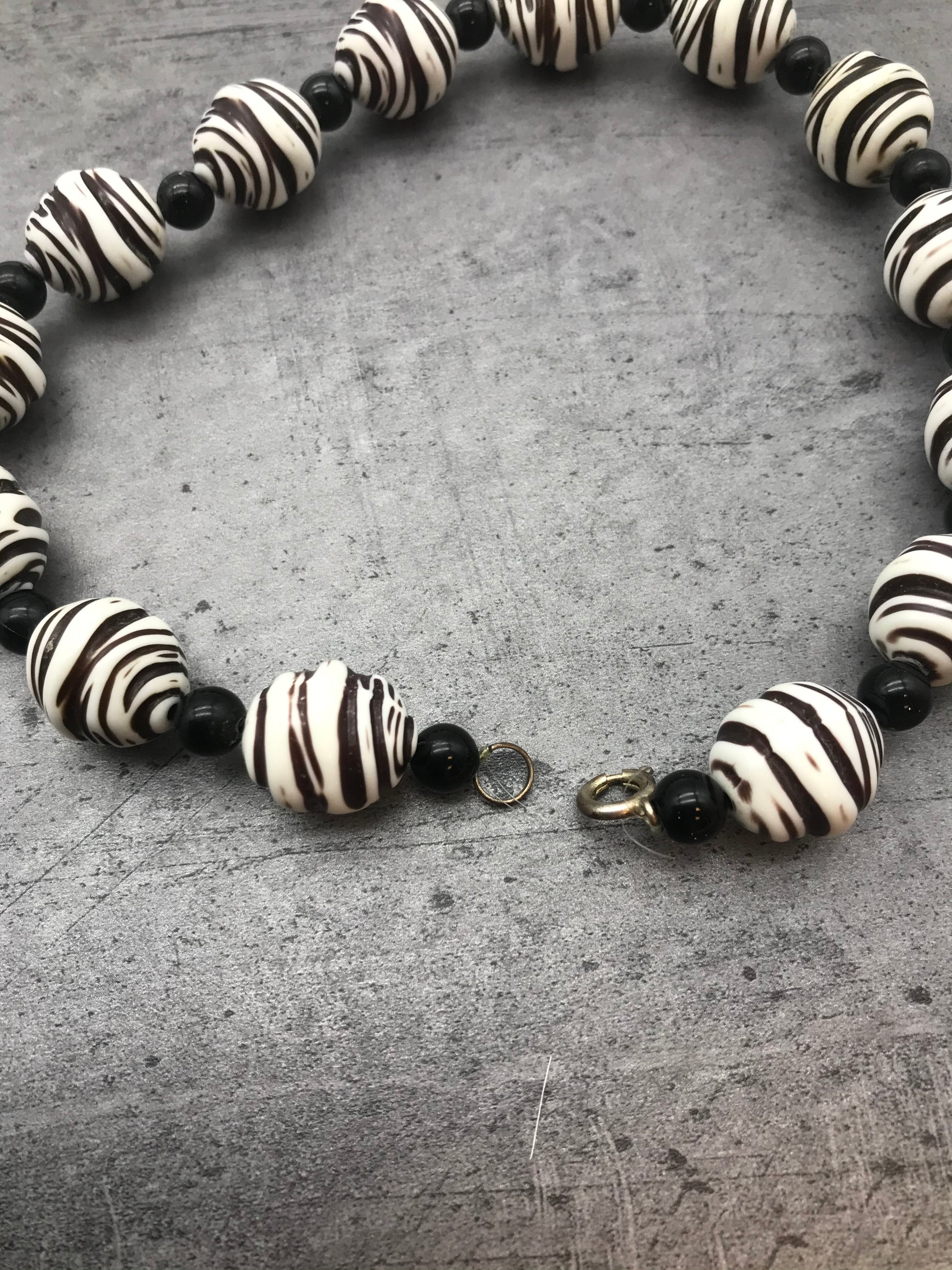 Dekorative Kette, Kette mit Perlen, schwarz weiß farben, geringelt