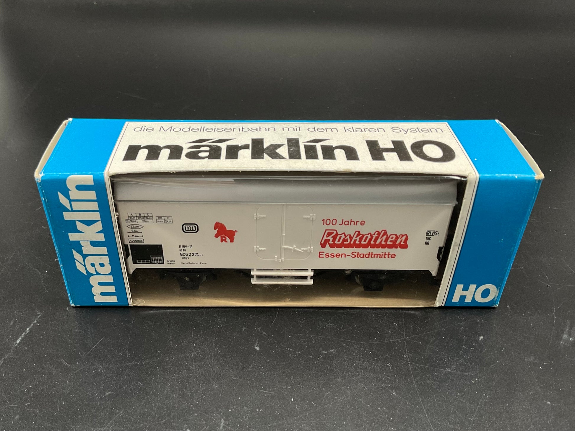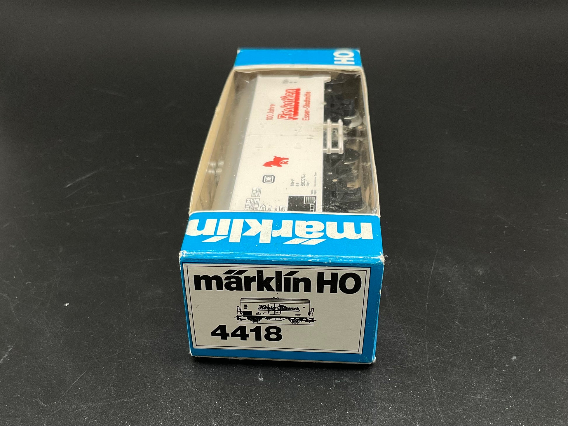 Es handelt sich hierbei um ein Modelleisenbahnanhänger von Märklin Nummer 4418. Der Anhänger ist gebraucht und wurde nicht auf seine Vollständigkeit und Funktionsfähigkeit geprüft. Nicht für kleine Kinder.