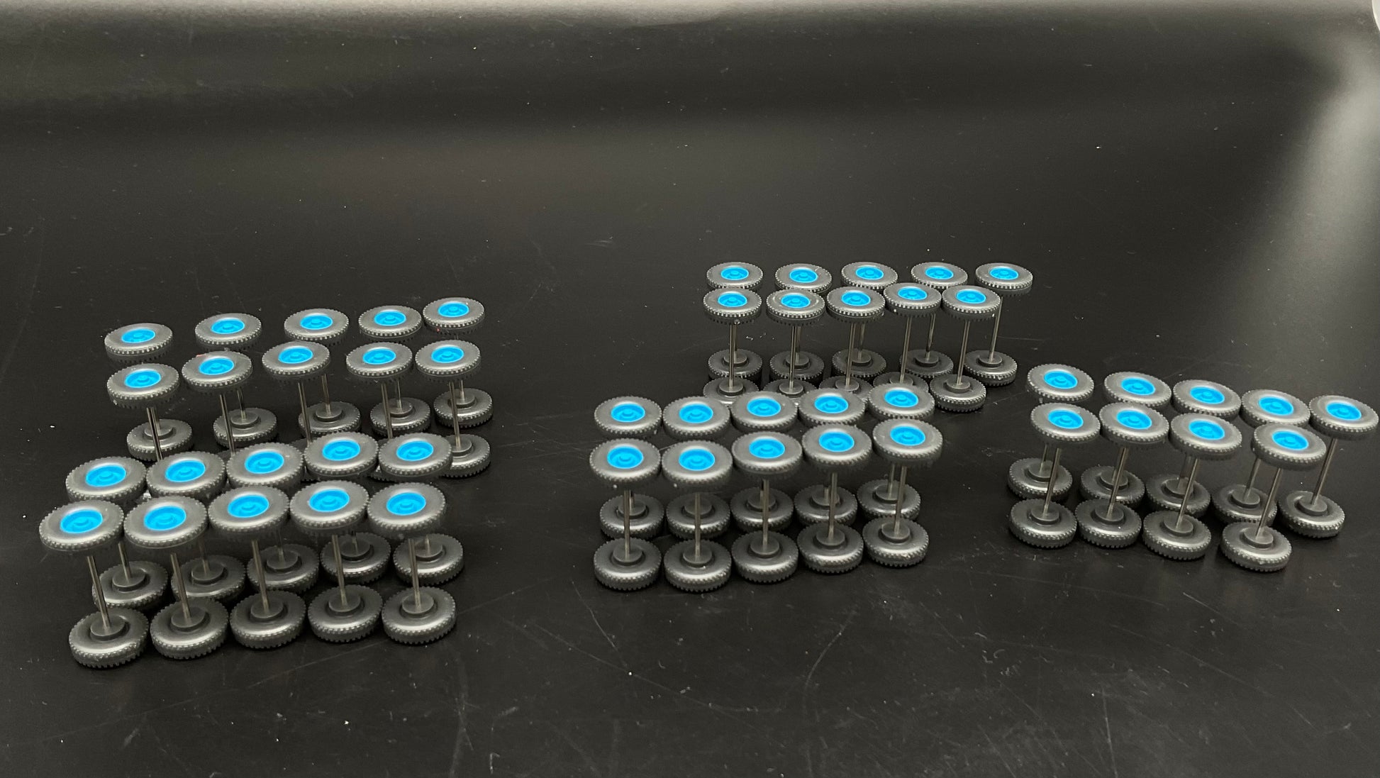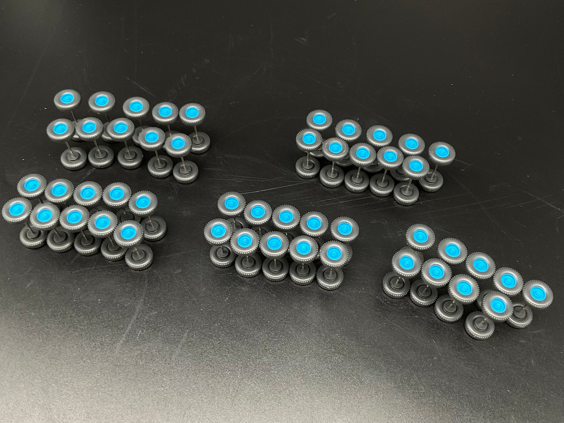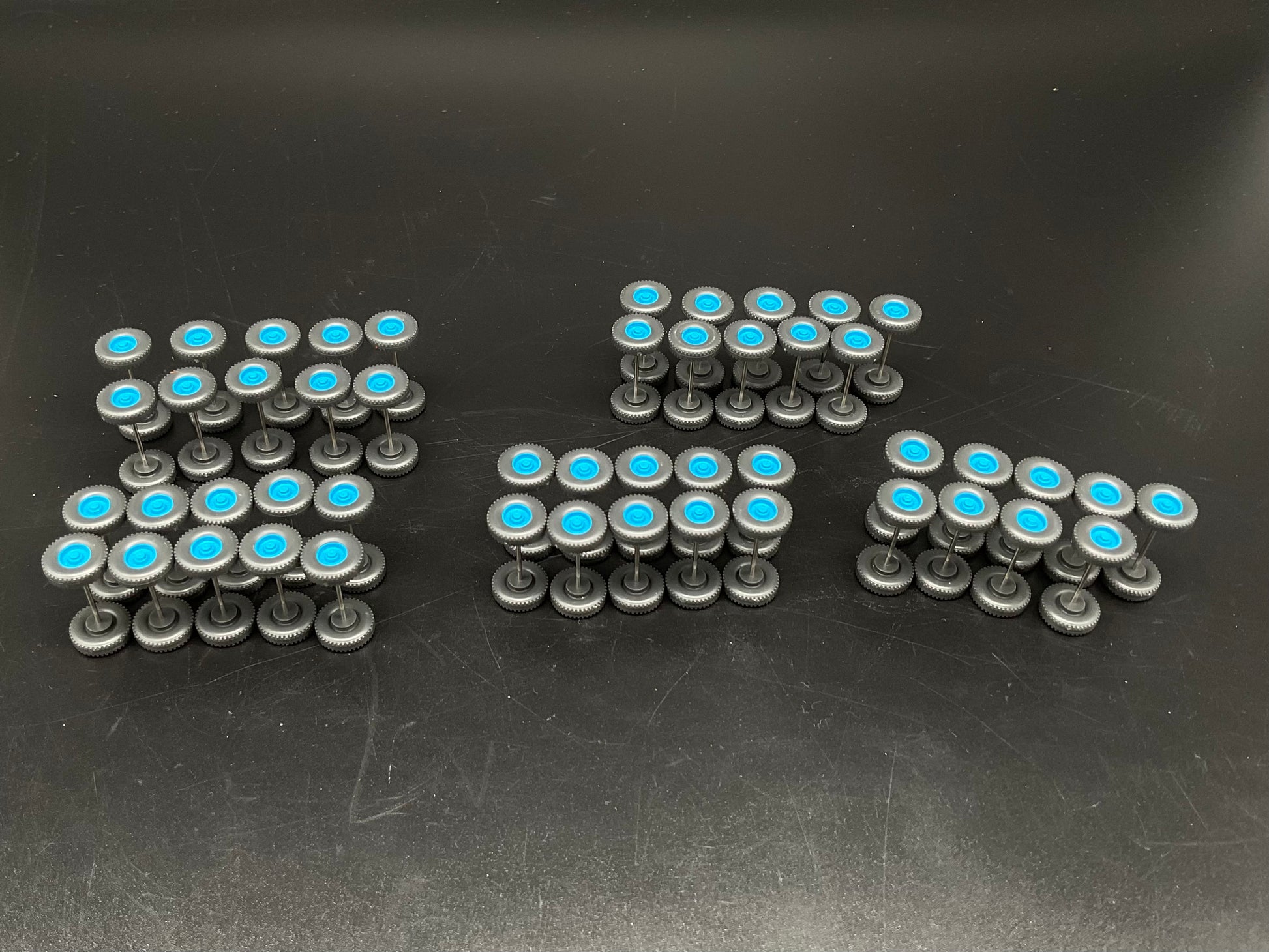 Es handelt sich hierbei um Modellachsen wie zum Beispiel für Wiking Modellfahrzeuge. Die Achsen sind blau und schwarz und gebraucht. Sie enthalten leichte Gebrauchsspuren und es handelt sich um 49 Achsen. Zustand entsprechend den Bildern und die Bilder dienen der Beschreibung.