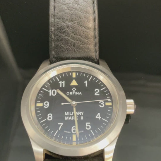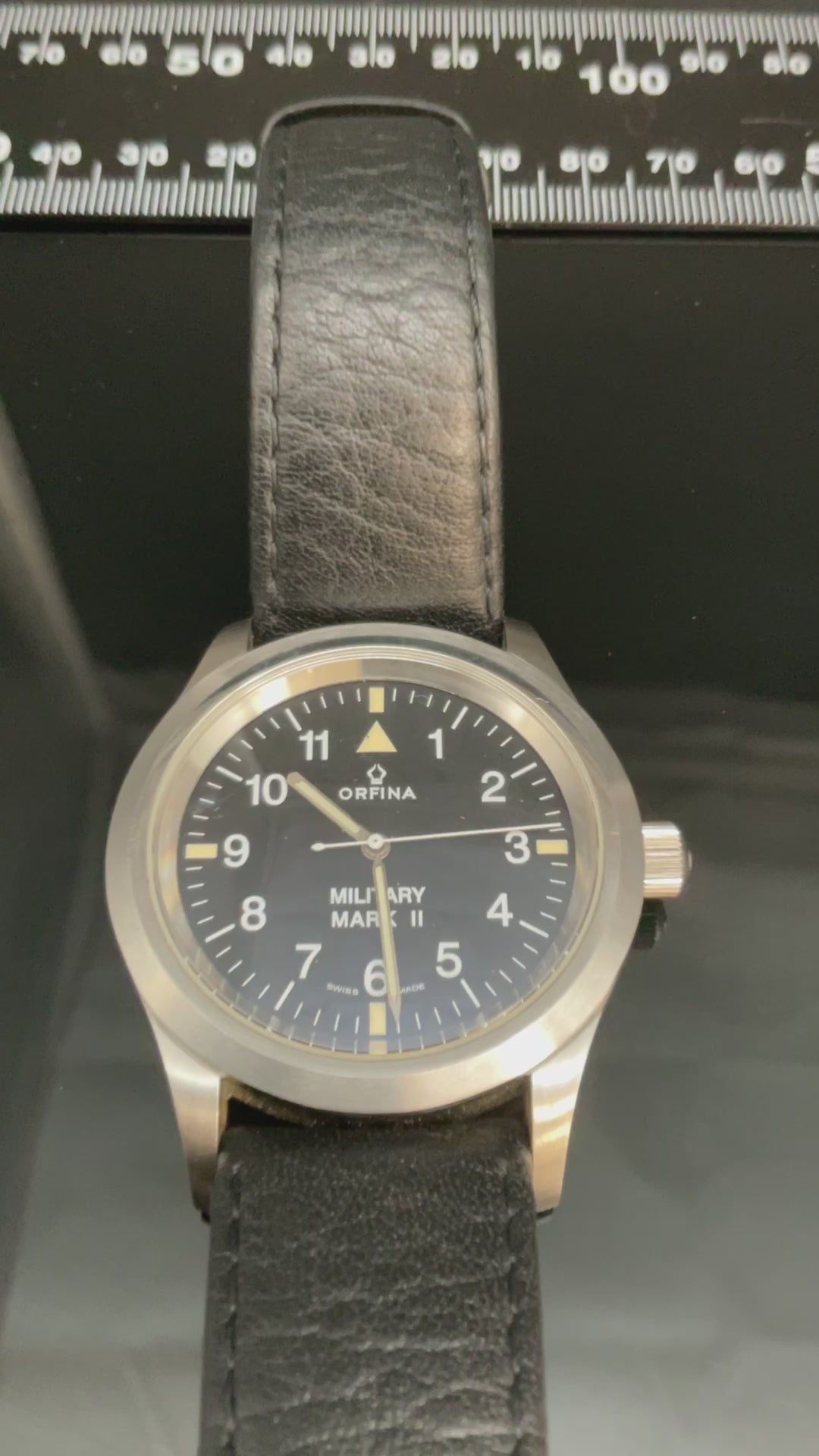 Aus einem Nachlass verkaufen wir im Auftrag diese sehr gut erhaltene Orfina Military Mark II Armbanduhr.