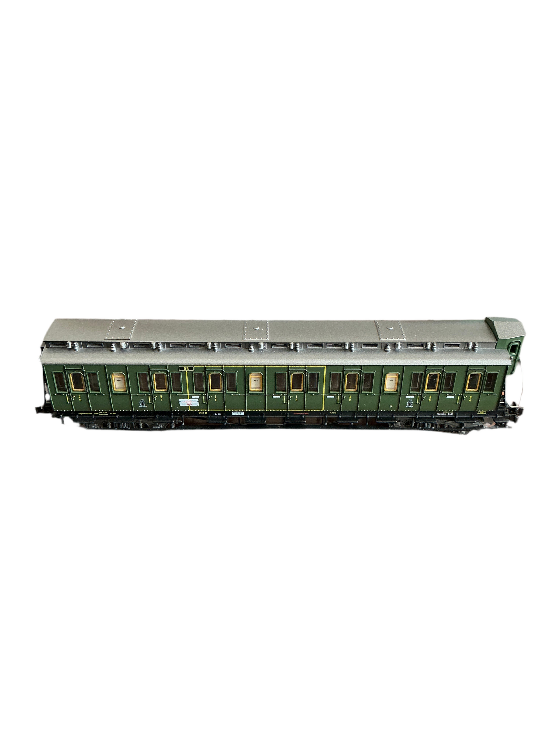 Aus einem Nachlass verkaufen wir diesen Personenwagen von Fleischmann in Originalverpackung, jedoch gebraucht mit leichten Gebrauchsspuren. Bilder sind Bestandteil der Beschreibung.
