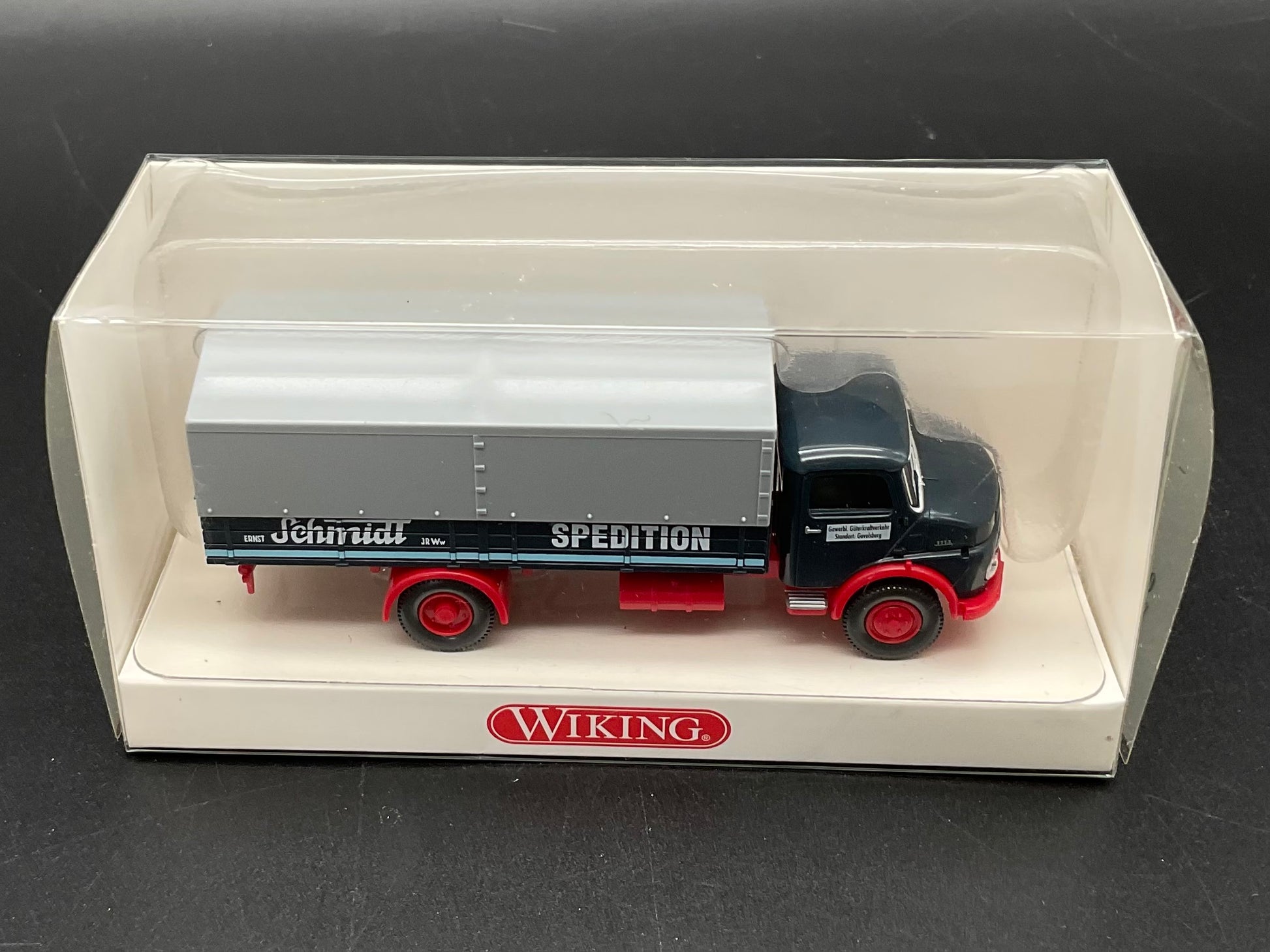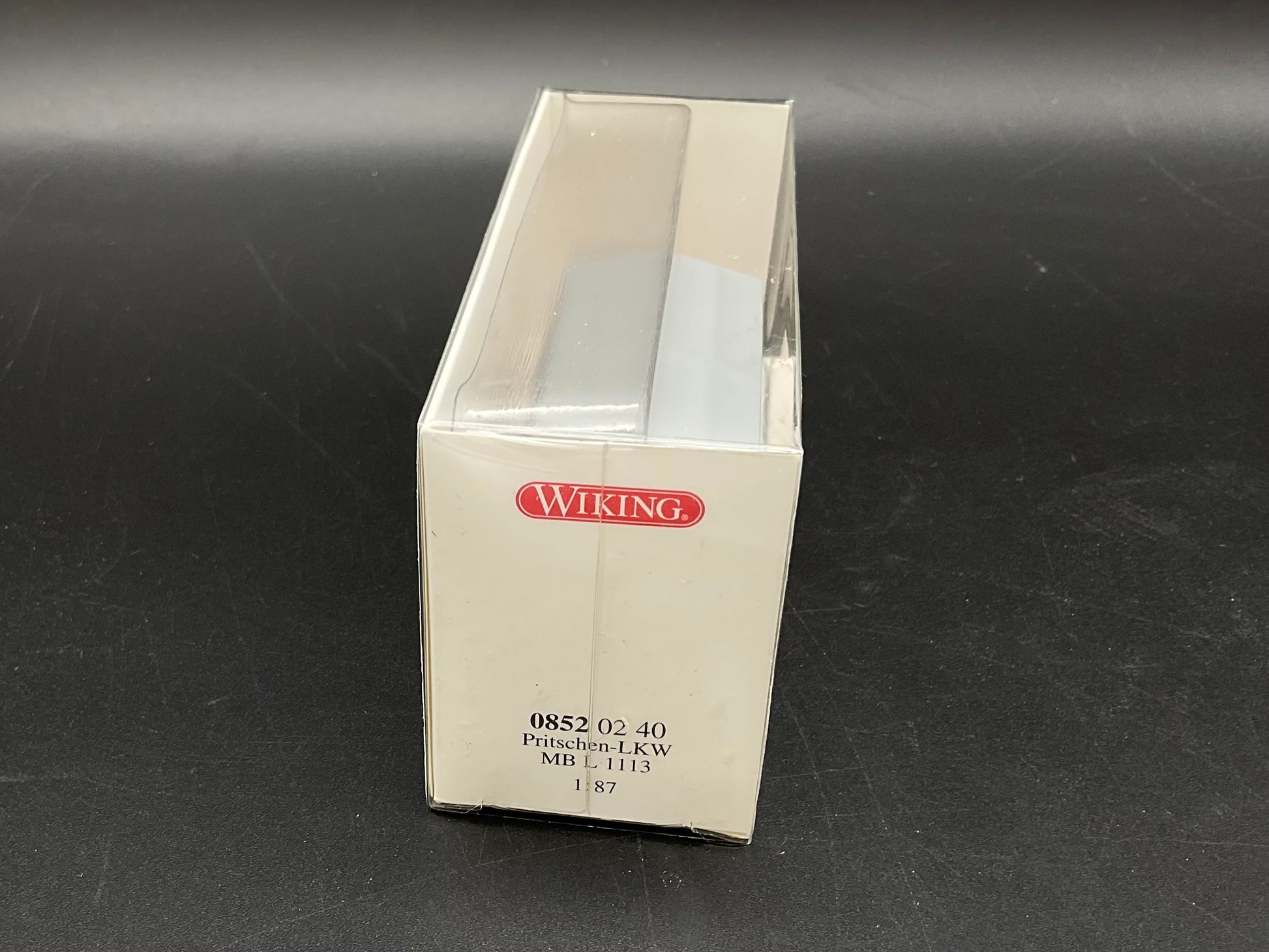 Es handelt sich hierbei um ein MB Pritschen-LKW mit der Modellnummer 0852 02 40. Das Fahrzeugset ist Original von Wiking und gebraucht. Daher weist es kleine Gebrauchsspuren auf. Zustand entsprechend den Bilder und die Bilder dienen der Beschreibung.