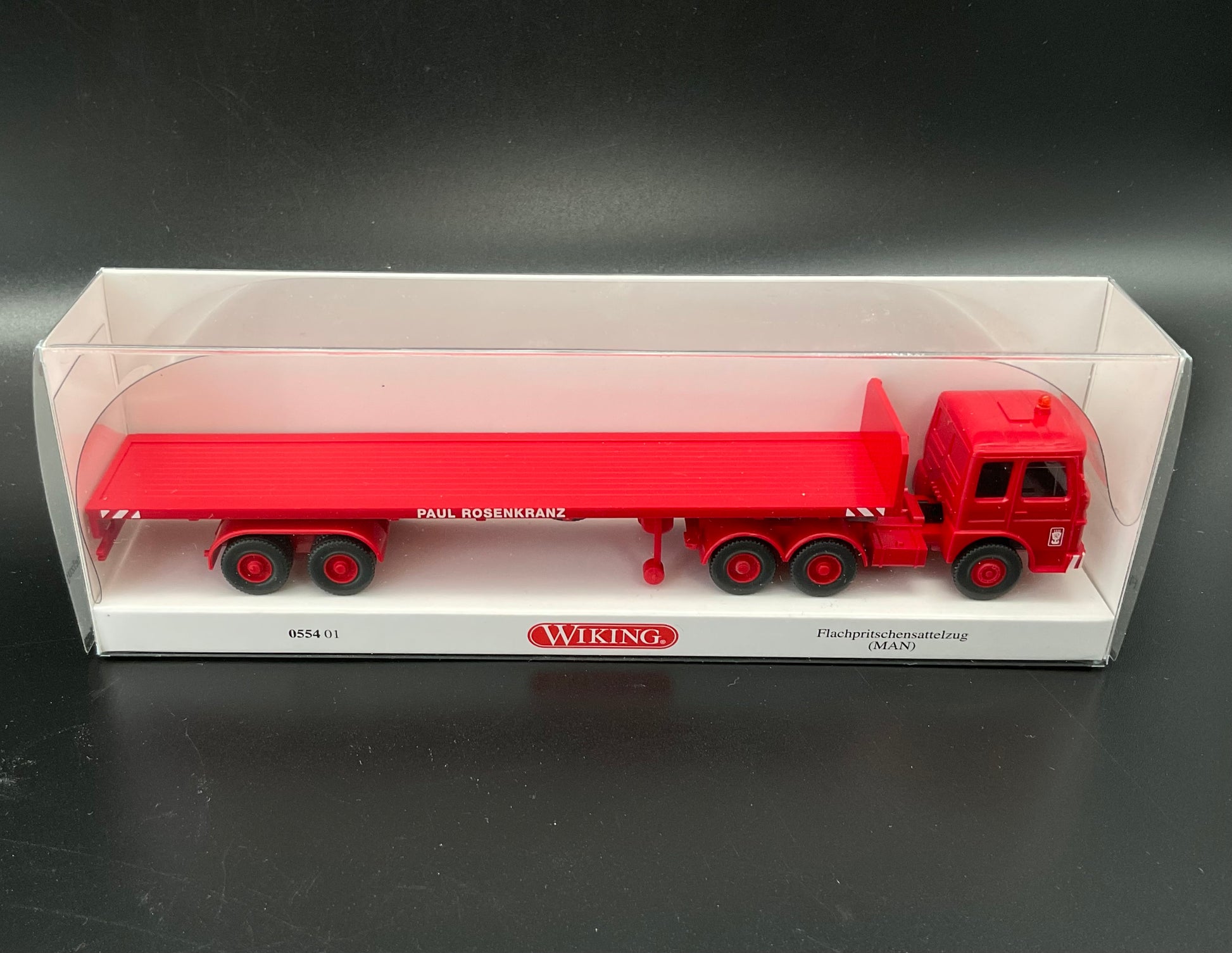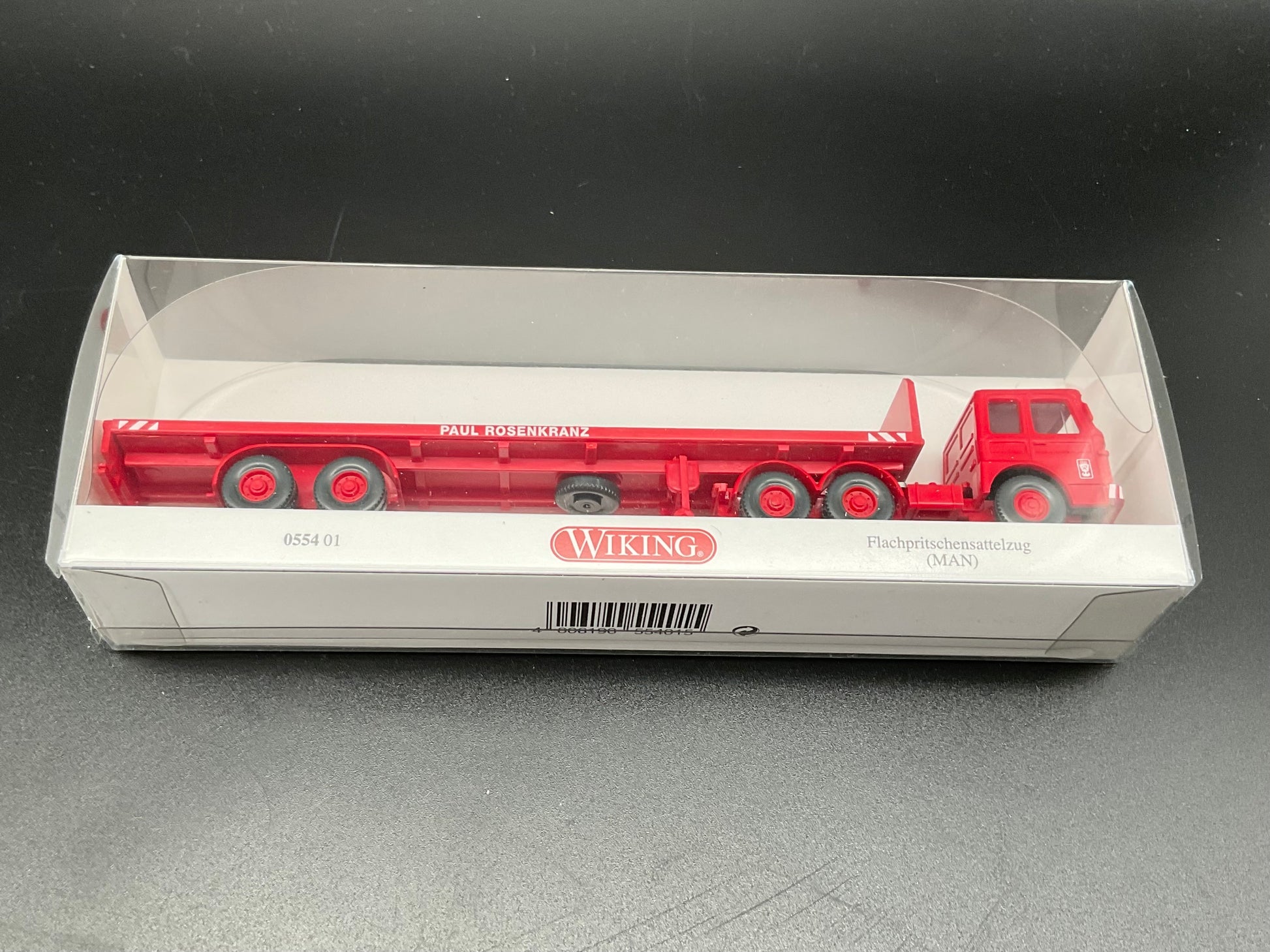 Es handelt sich hierbei um ein Flachpritschensattelzug mit der Modellnummer 0554 01. Das Modellfahrzeug ist Original von Wiking und gebraucht. Es weist daher Gebrauchsspuren auf. Zustand entsprechend den Bildern und die Bilder dienen der Beschreibung.