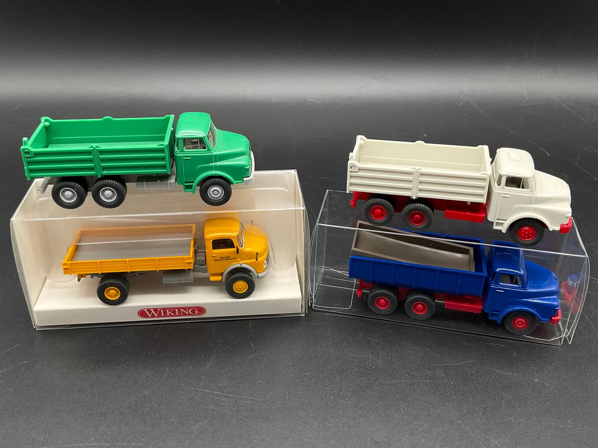 Vier Pritschenkipper von Wiking
