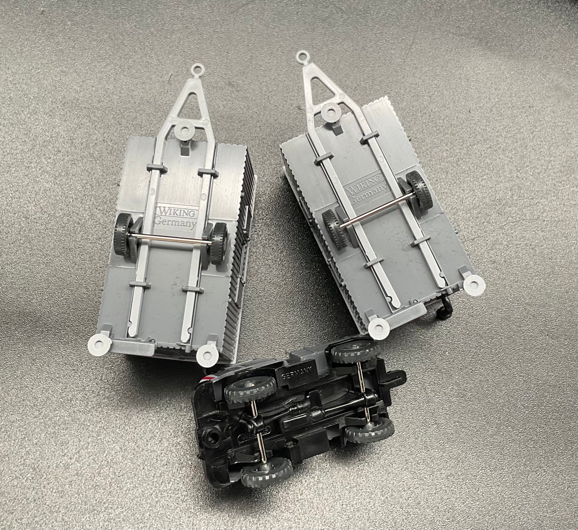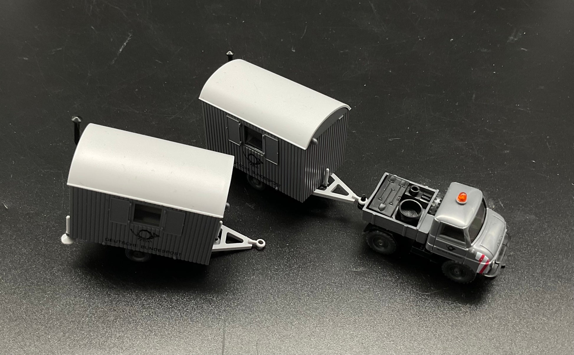 Es handelt sich um ein Set von Wiking mit einem Fahrzeug und zwei Bauanhängern in Grau. Das Set ist Original von Wiking und gebraucht. Hinweise und Zustand entsprechend den Bildern. Kein Spielzeug.