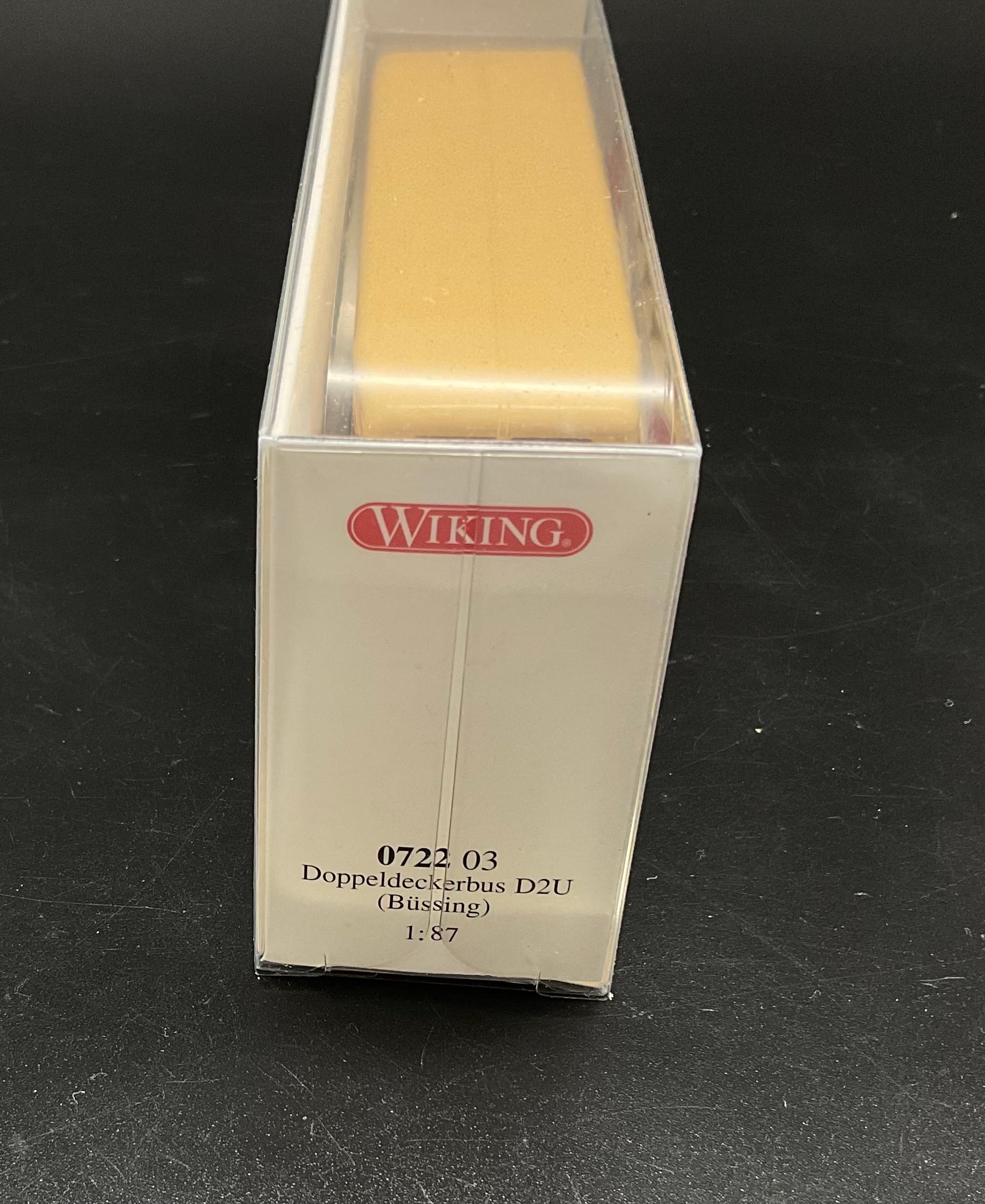 Das Modellfahrzeug ist ein Doppeldeckerbus D2U mit der Modellnummer 0722 03 und ist von Wiking. Das Modell ist ein Original Wiking Modellfahrzeug und gebraucht. Auf seine Funktionsfähigkeit wurde es nicht geprüft. Zustand und Hinweise entsprechend den Bildern.