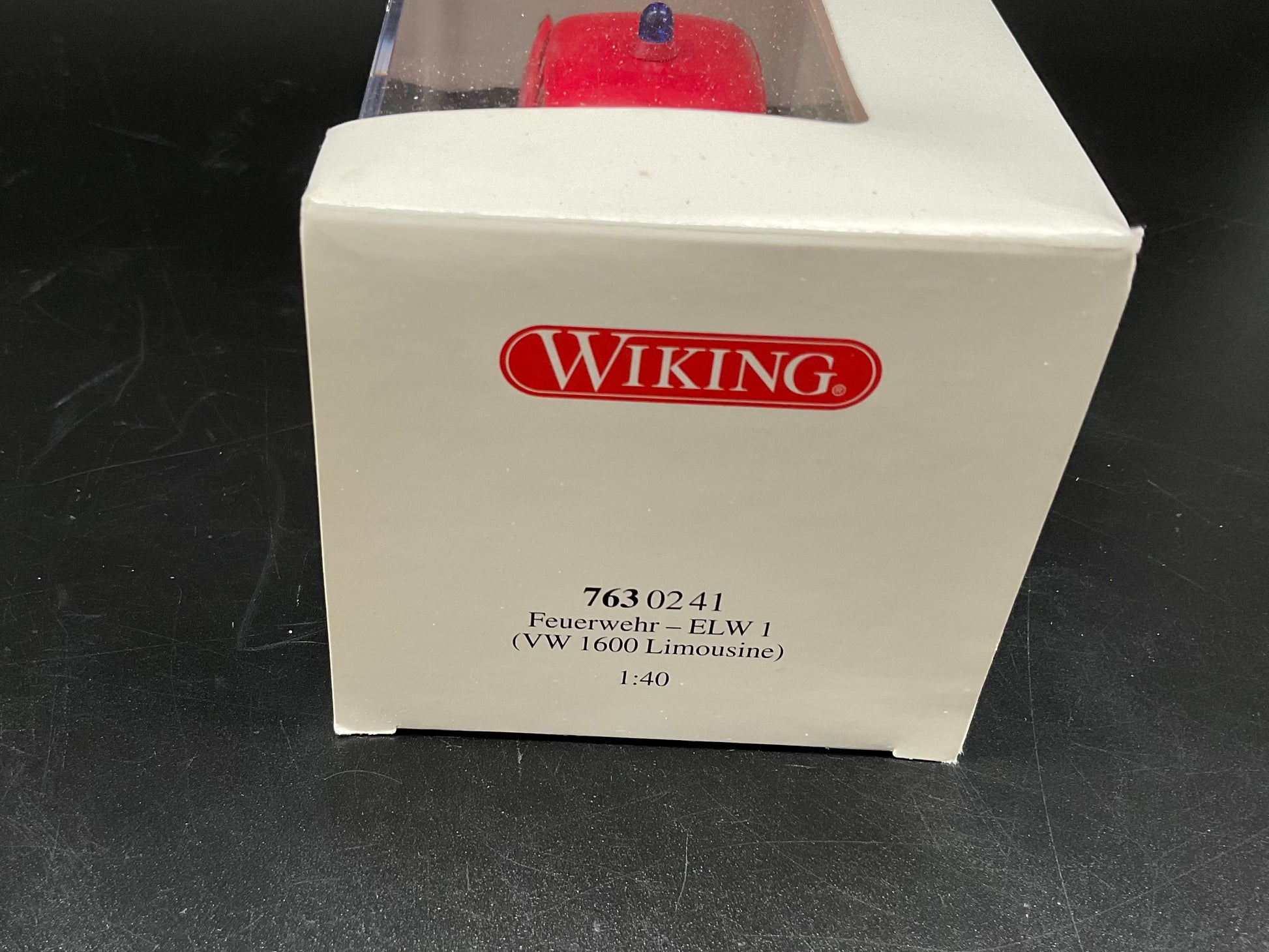 Es handelt sich hierbei um ein Feuerwehr ELW 1 - VW 1600 Wiking Modellfahrzeug mit der Modellnummer 763 02 41. Das Modellfahrzeug ist Original von Wiking und gebraucht. Das Modellfahrzeug weist Gebrauchsspuren auf und Zustand entsprechend den Bildern.
