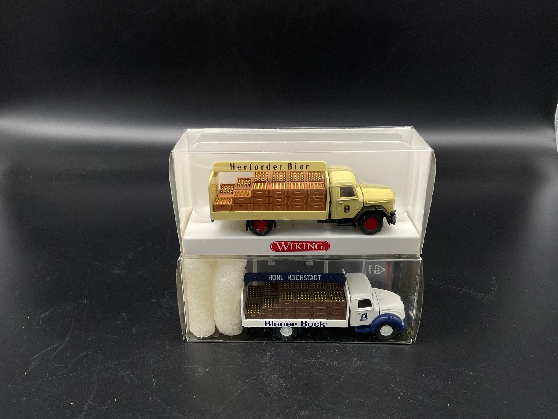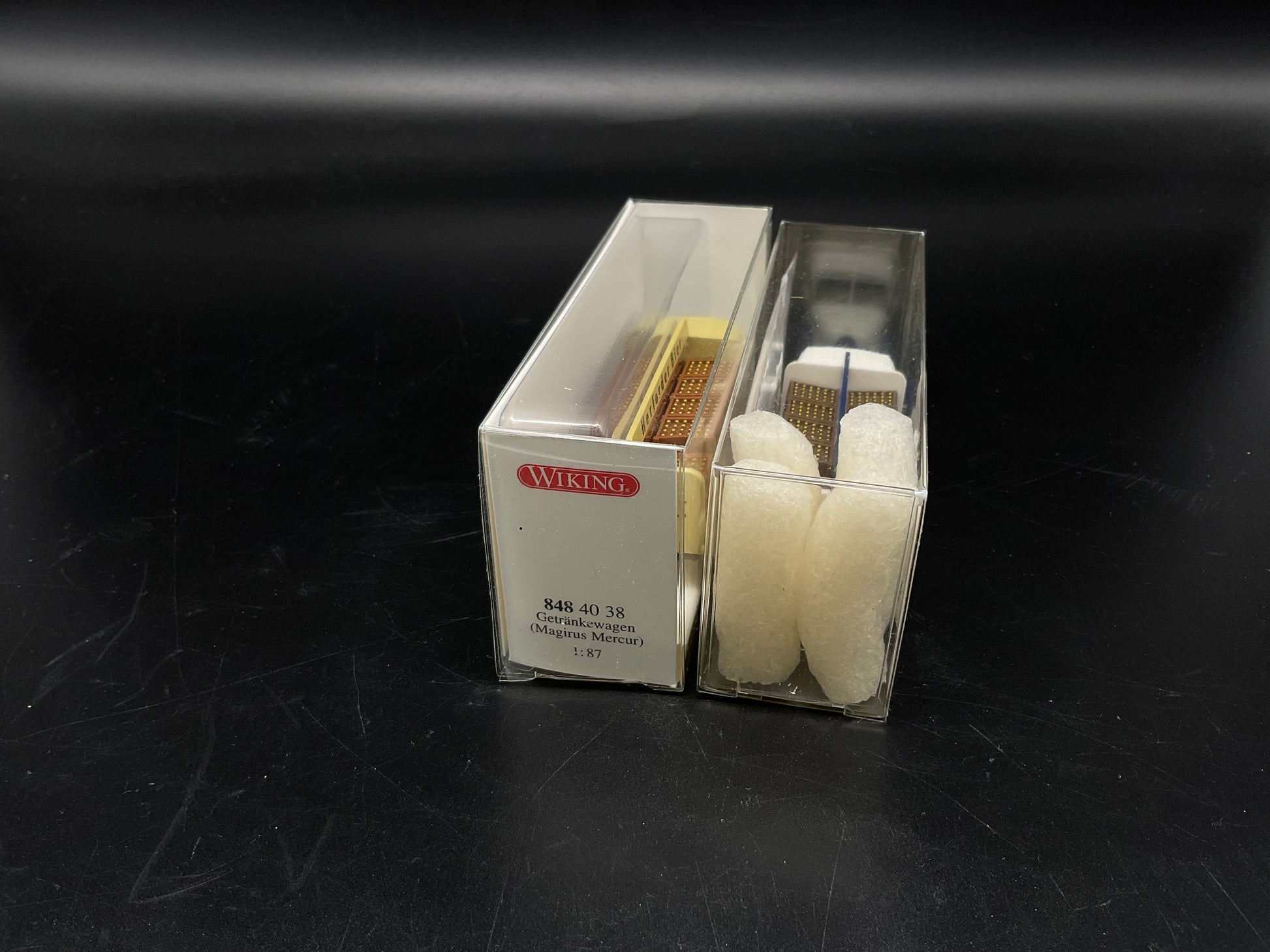 Es handelt sich hierbei um zwei Getränkewägen der eine hat die Modellnummer 848 40 38. Das Fahrzeug ist Original von Wiking und gebraucht. Daher weist es kleine Gebrauchsspuren auf. Zustand entsprechend den Bilder und die Bilder dienen der Beschreibung.