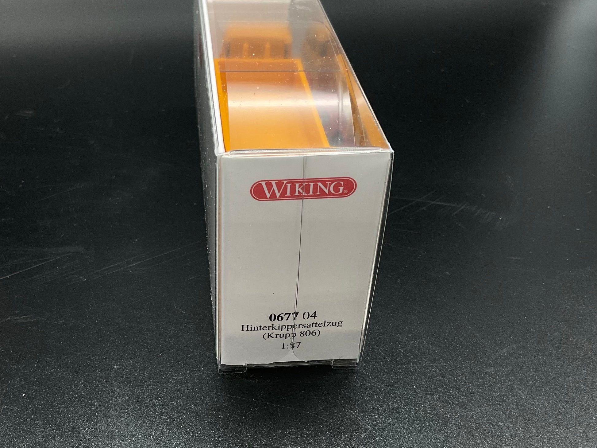 Es handelt sich hierbei um einmal ein Hinterkippersattelzug mit der Modellnummer 0677 04. Das Modell ist Original von Wiking und gebraucht und weist Gebrauchsspuren auf. Zustand entsprechend den Bildern und die Bilder dienen der Beschreibung.