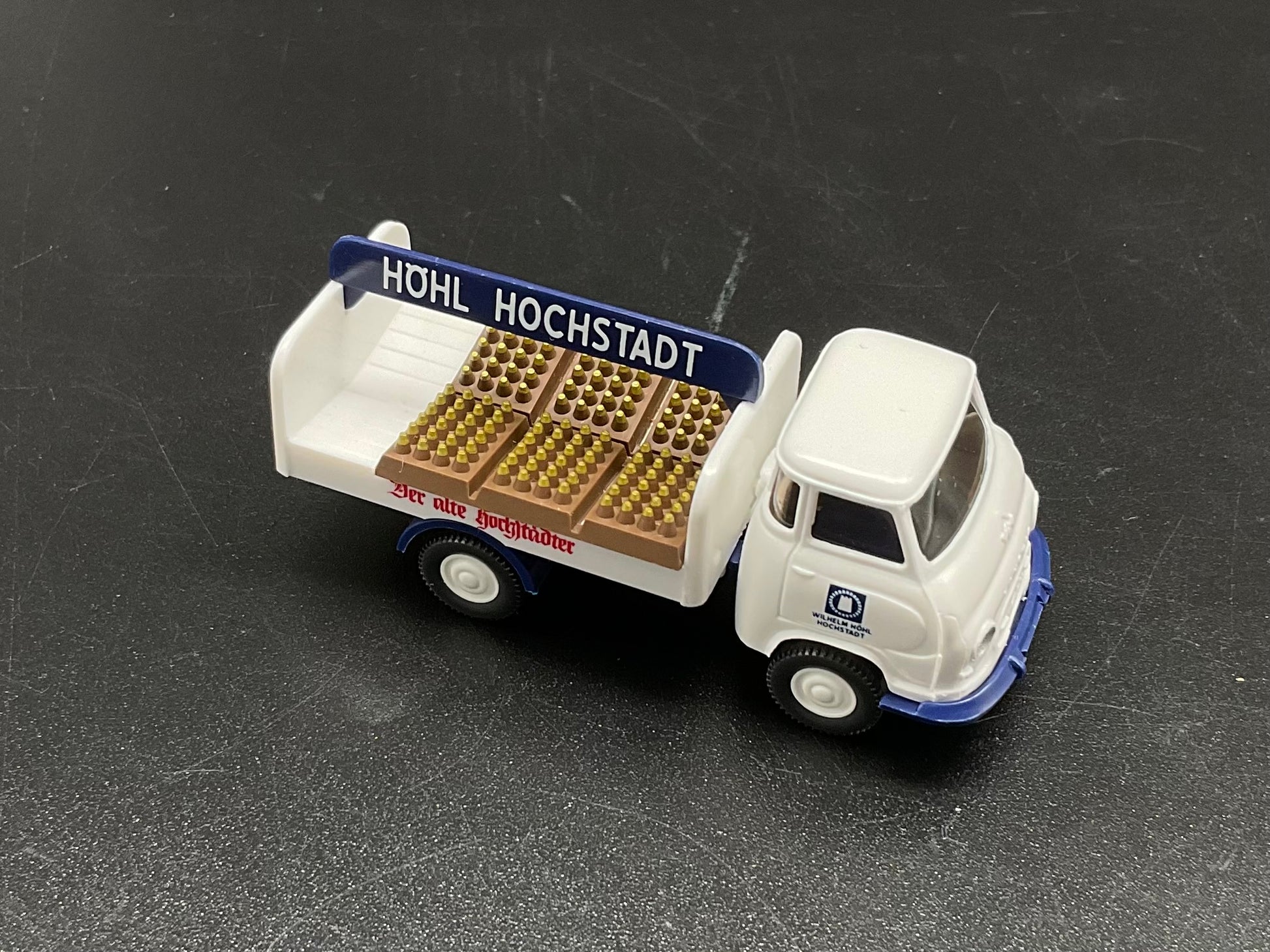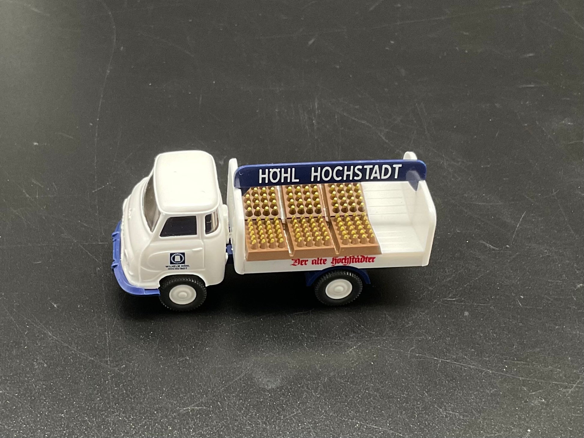 Es handelt sich hierbei einmal um ein Höhl Hochstadt Fahrzeug in weiß-blau. Das Modellfahrzeug ist Original von Wiking und gebraucht. Zustand und Hinweise entsprechend den Bildern. Nicht für kleine Kinder.
