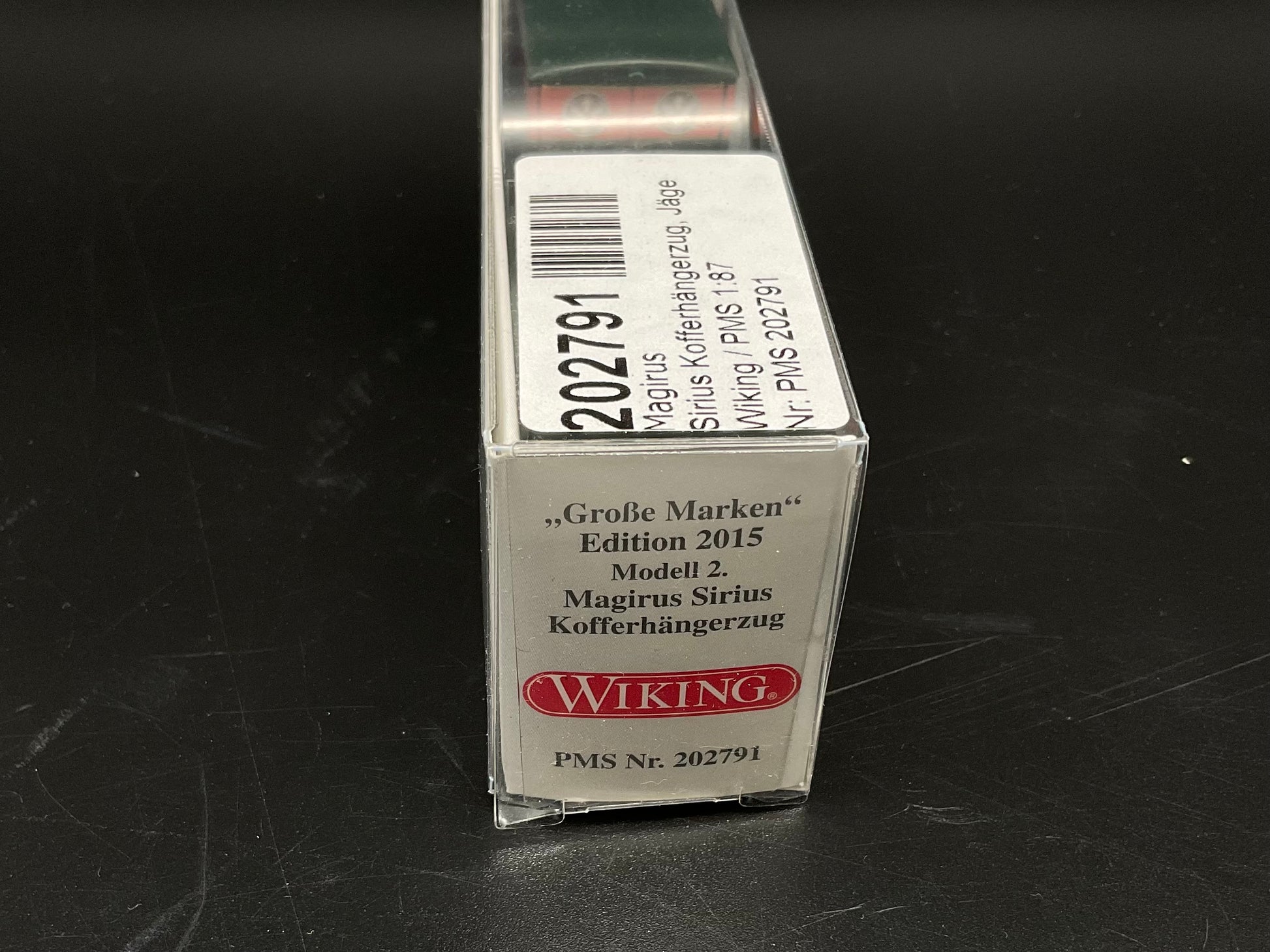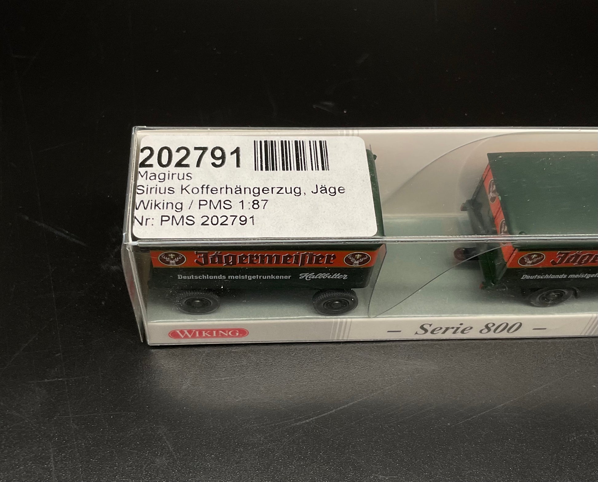 Es handelt sich hierbei um ein Wiking Kofferhängerzug. Das Modellfahrzeug ist Original von Wiking und gebraucht. Es weist Gebrauchsspuren auf und der Zustand ist entsprechend den Bildern.