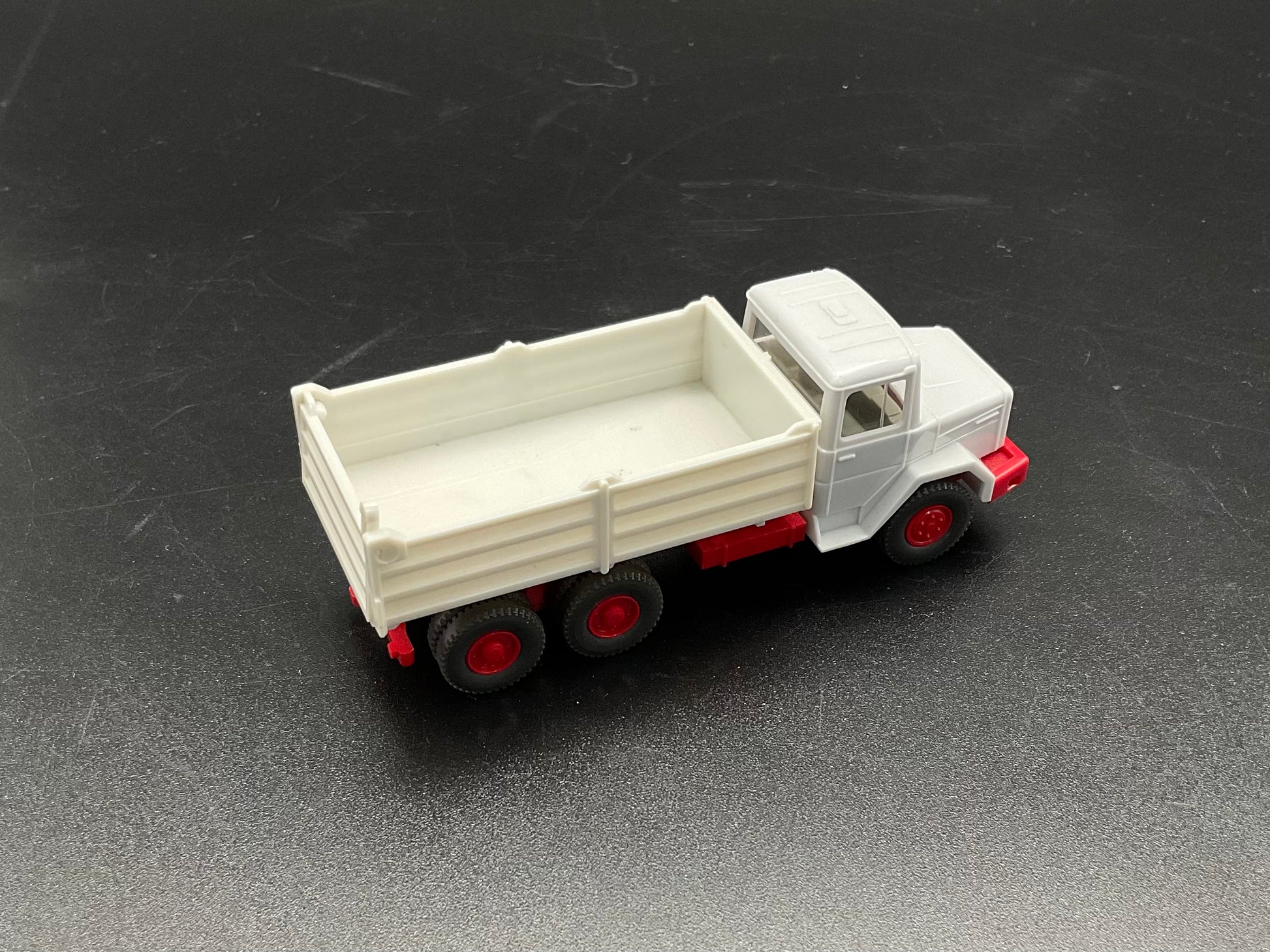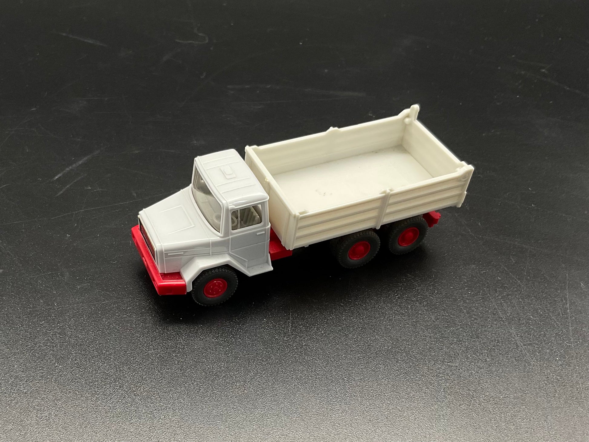 Es handelt sich hierbei einmal um ein Kipplader in Weiß von Magirus Deutz. Das Modellfahrzeug ist Original von Wiking und gebraucht. Zustand und Hinweise entsprechend den Bildern. Nicht für kleine Kinder.