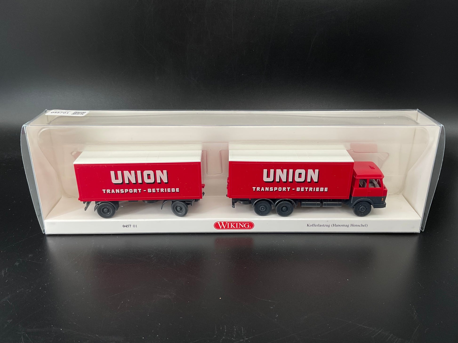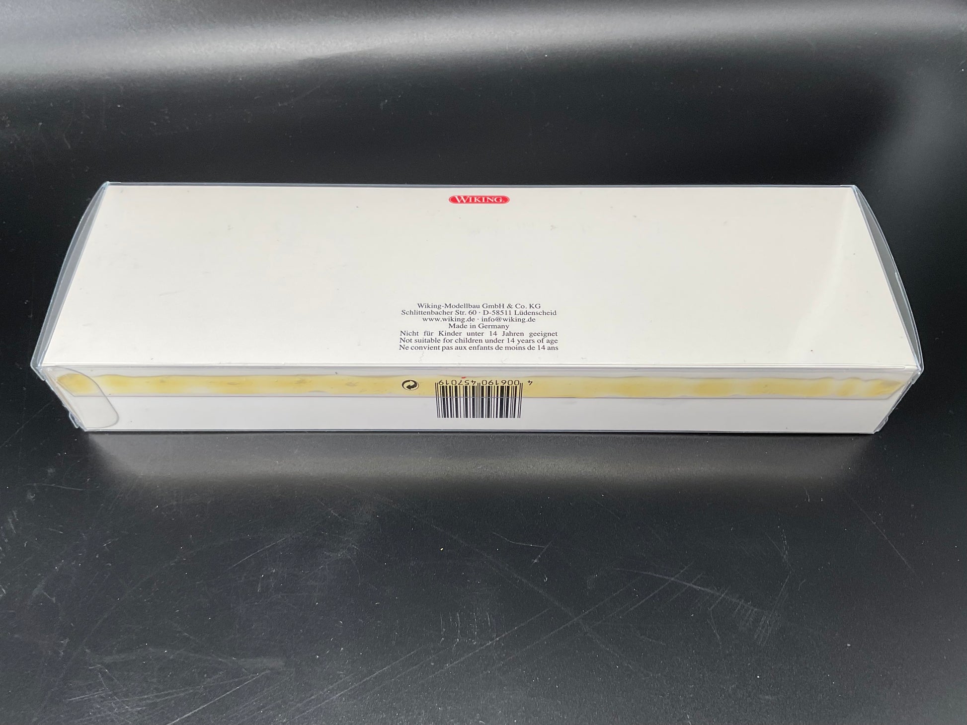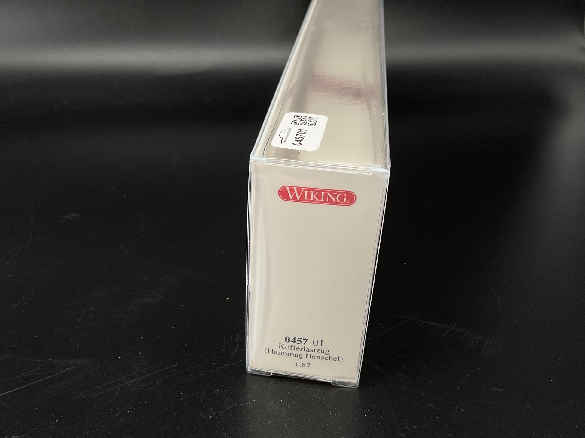 Es handelt sich hierbei um ein Kofferlastzug mit der Modellnummer 0457 01. Das Fahrzeug ist Original von Wiking und gebraucht. Daher weist es kleine Gebrauchsspuren auf. Zustand entsprechend den Bilder und die Bilder dienen der Beschreibung.