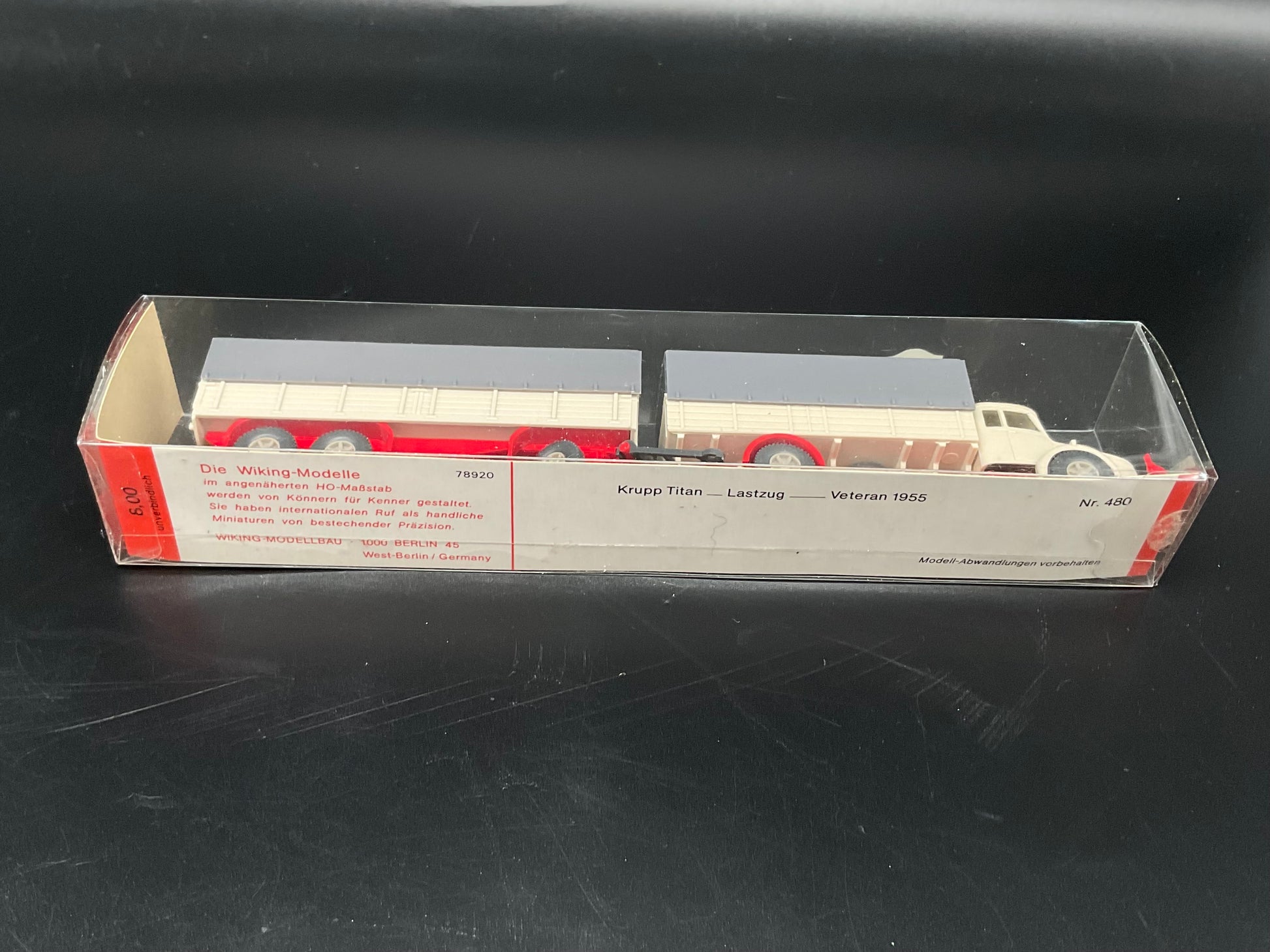Es handelt sich hierbei um ein Krupp Titan mit der Modellnummer 480. Das Fahrzeug ist Original von Wiking und gebraucht. Daher weist es kleine Gebrauchsspuren auf. Zustand entsprechend den Bilder und die Bilder dienen der Beschreibung.