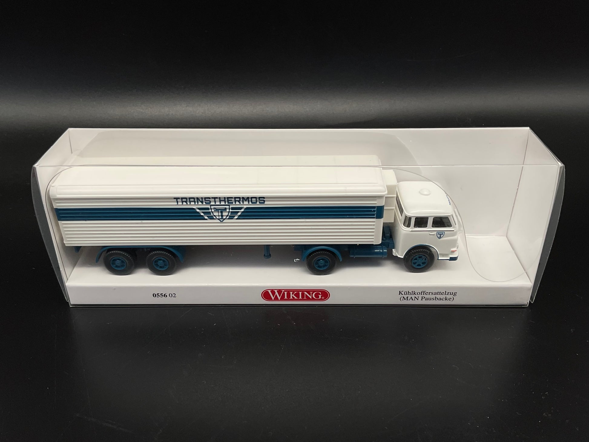 Es handelt sich hierbei um ein Kühlkoffersattelzug mit der Modellnummer 0556 02. Das Fahrzeug ist Original von Wiking und gebraucht. Daher weist es kleine Gebrauchsspuren auf. Zustand entsprechend den Bilder und die Bilder dienen der Beschreibung.
