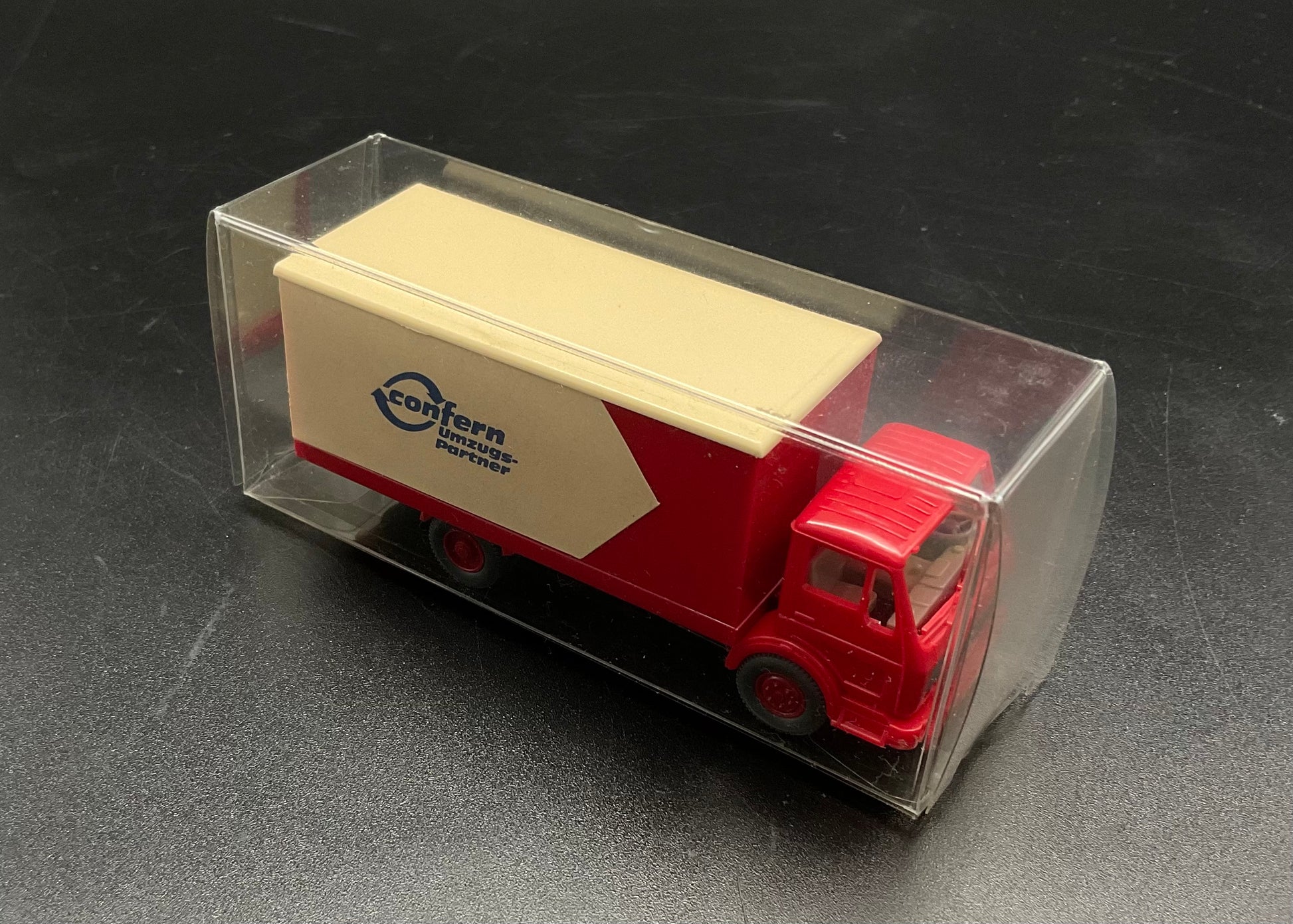 Es handelt sich hierbei einmal um ein LKW in beige und rot von Confern. Das Modellfahrzeug ist Original von Wiking und gebraucht. Zustand und Hinweise entsprechend den Bildern. Nicht für kleine Kinder.