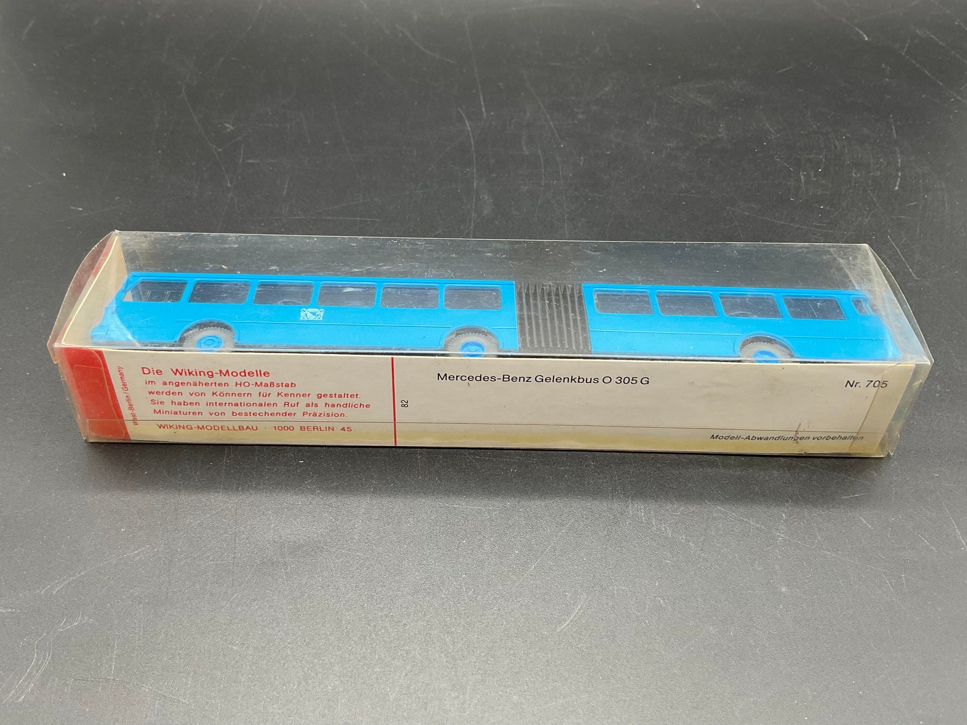 Es handelt sich hierbei um ein Gelenkbus von Mercedes Benz MB O 305 G mit der Modellnummer 705. Das Modellfahrzeug ist gebraucht und Original von Wiking. Es weist leichte Gebrauchsspuren auf und der Zustand ist entsprechend den Bildern. Zusätzlich dienen die Bilder der Beschreibung.