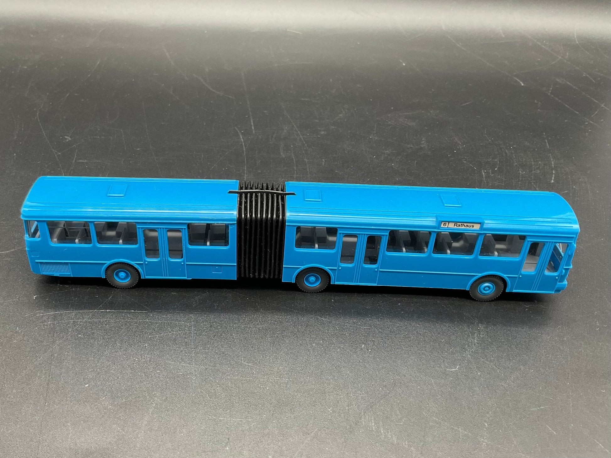 Es handelt sich hierbei um ein Gelenkbus von Mercedes Benz MB O 305 G mit der Modellnummer 705. Das Modellfahrzeug ist gebraucht und Original von Wiking. Es weist leichte Gebrauchsspuren auf und der Zustand ist entsprechend den Bildern. Zusätzlich dienen die Bilder der Beschreibung.