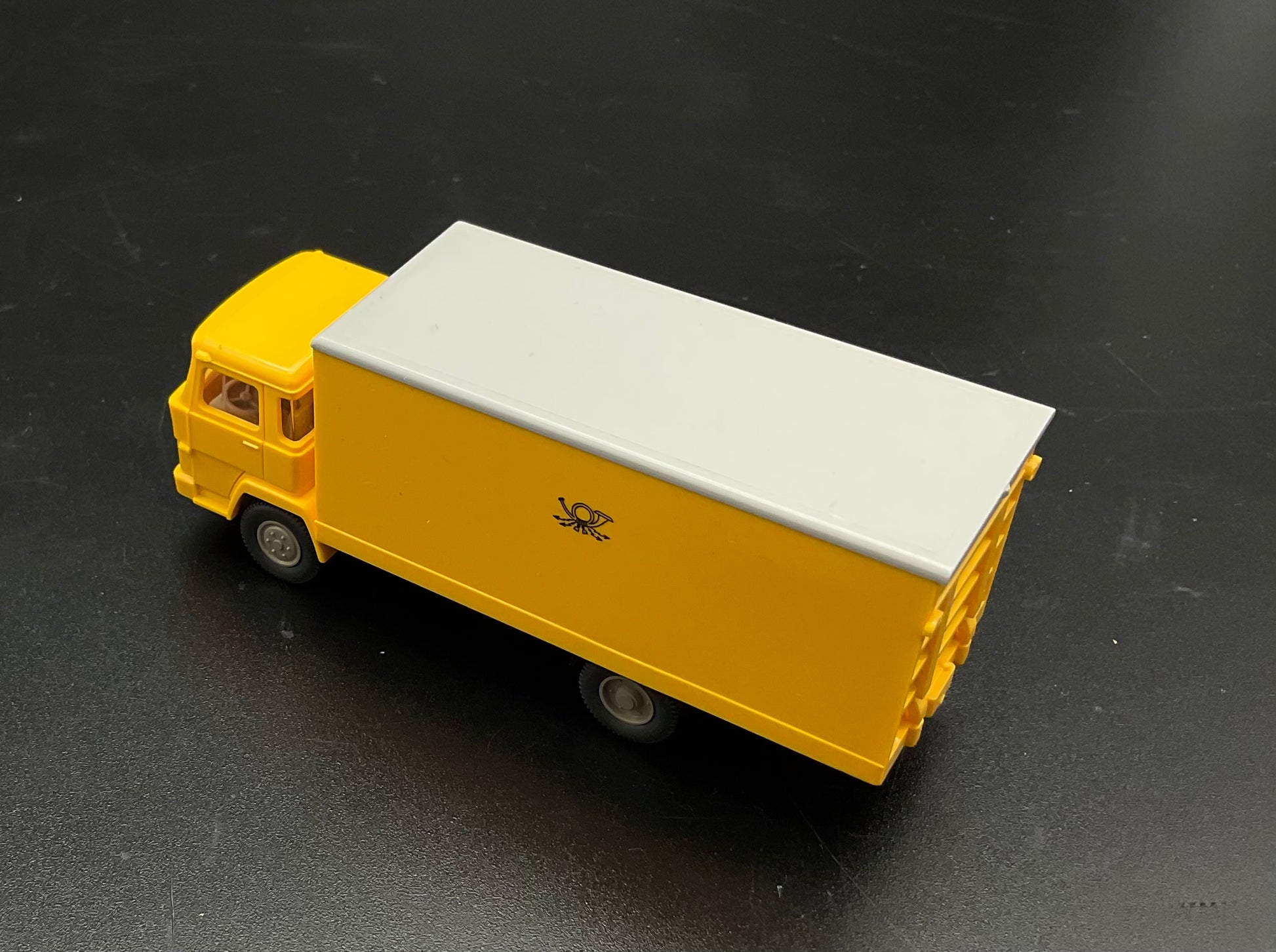 Es handelt sich hierbei einmal um ein Post-LKW in gelb. Das Modellfahrzeug ist Original von Wiking und gebraucht. Zustand und Hinweise entsprechend den Bildern. Nicht für kleine Kinder.