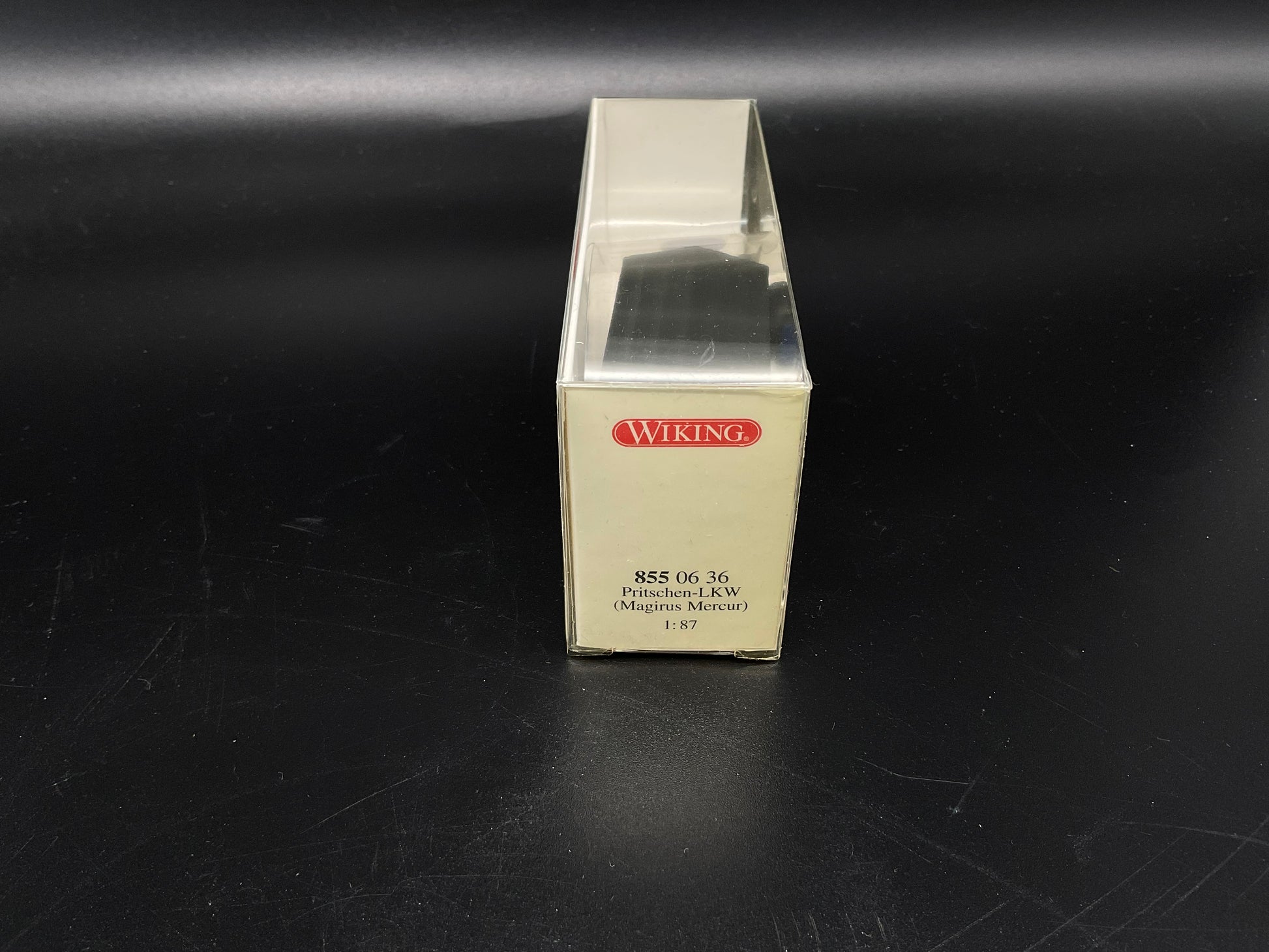 Es handelt sich hierbei um ein Pritschen-LKW mit der Modellnummer 855 06 36. Das Fahrzeug ist Original von Wiking und gebraucht. Daher weist es kleine Gebrauchsspuren auf. Zustand entsprechend den Bilder und die Bilder dienen der Beschreibung.