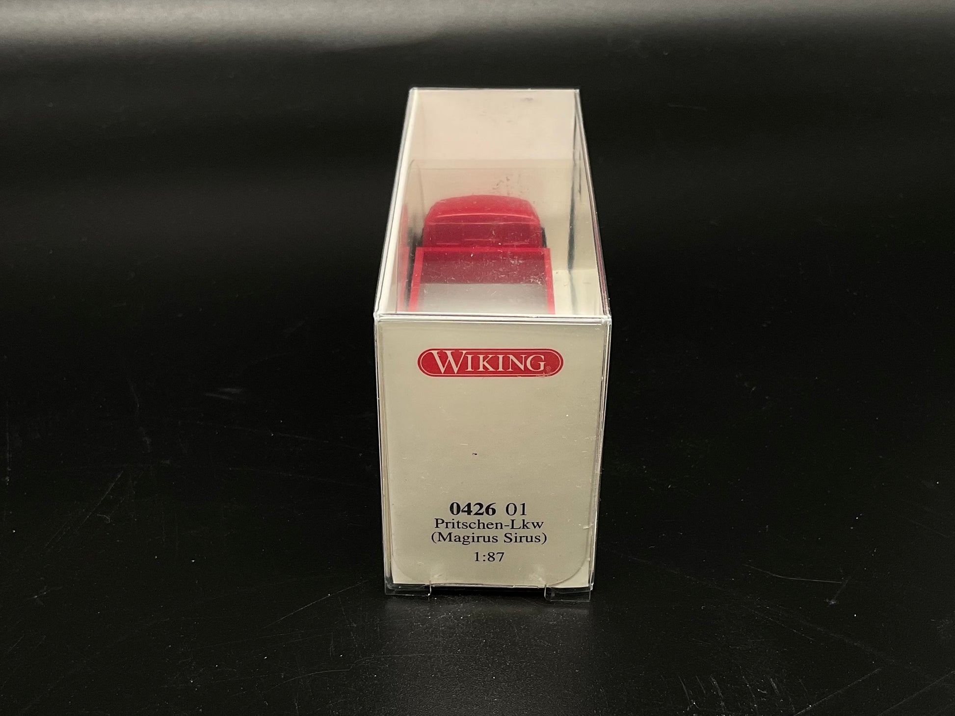 Es handelt sich hierbei um ein Pritschen-LKW Magirus Sirus mit der Modellnummer 0426 01. Das Fahrzeug ist Original von Wiking und gebraucht. Daher weist es kleine Gebrauchsspuren auf. Zustand entsprechend den Bilder und die Bilder dienen der Beschreibung.