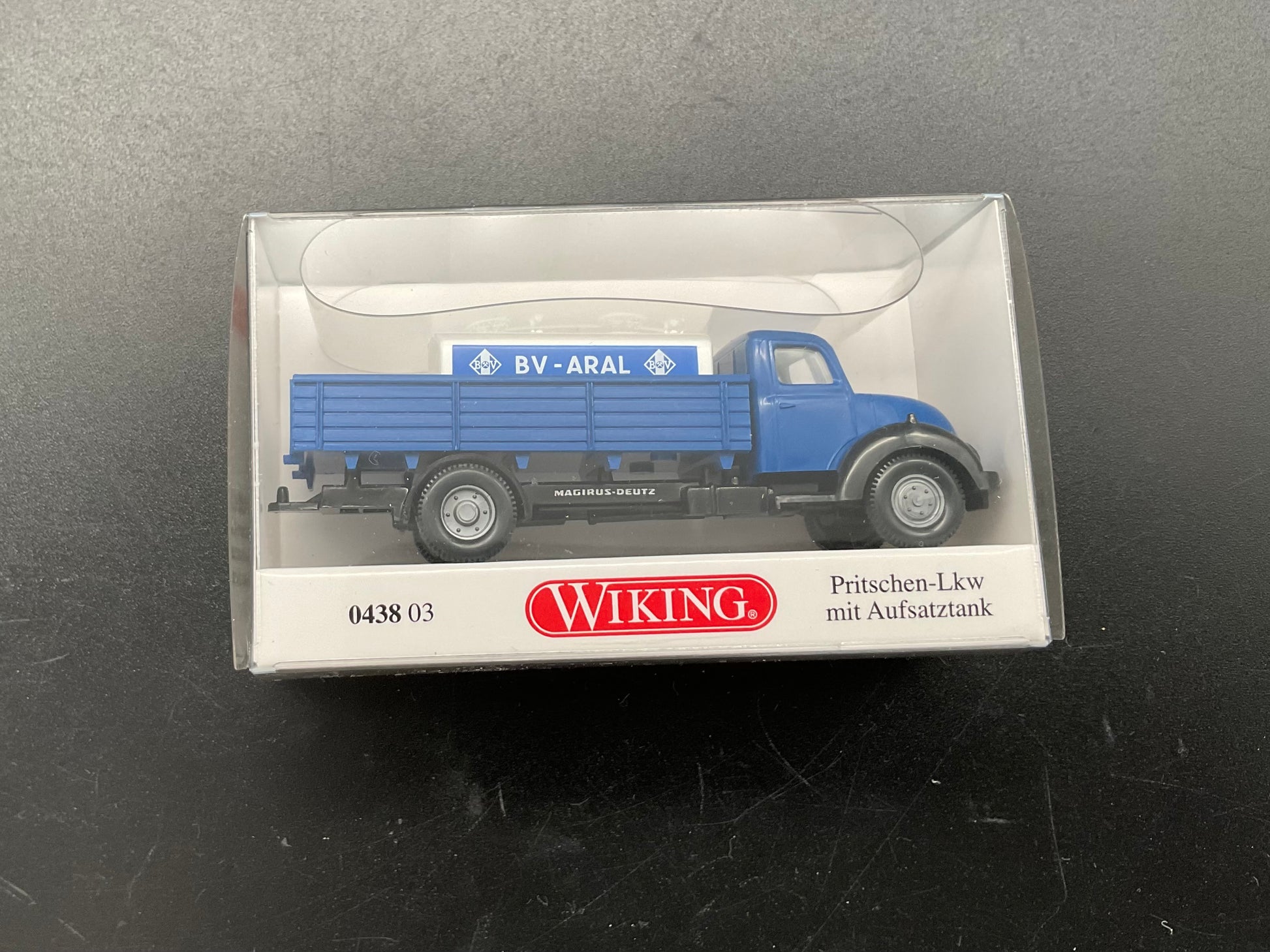 Es handelt sich hierbei um einmal ein Peitschen-LKW mit Aufsatztank mit der Modellnummer 0438 03. Das Modell ist Original von Wiking und gebraucht. Zustand entsprechend den Bildern und Bilder dienen der Beschreibung.
