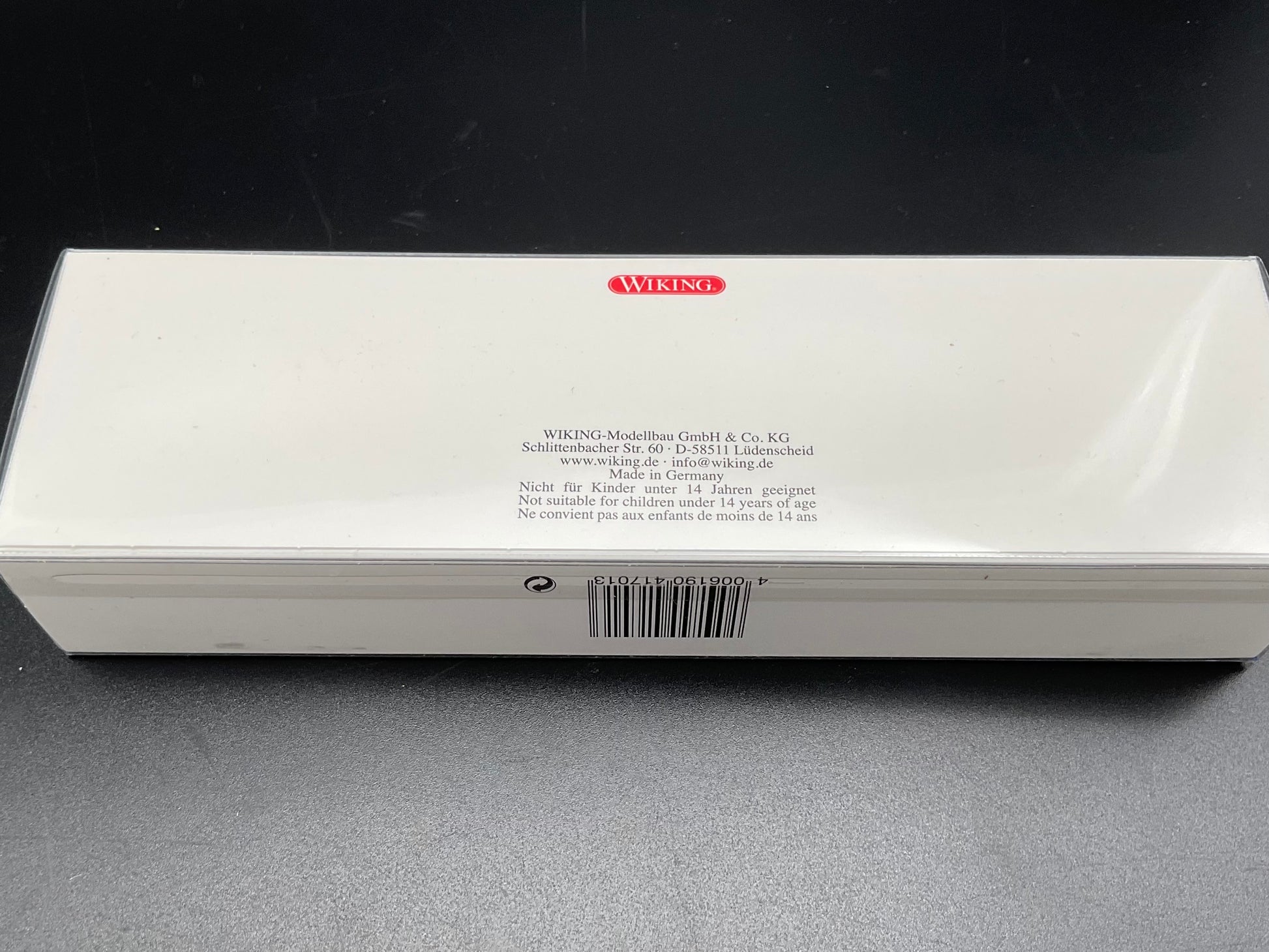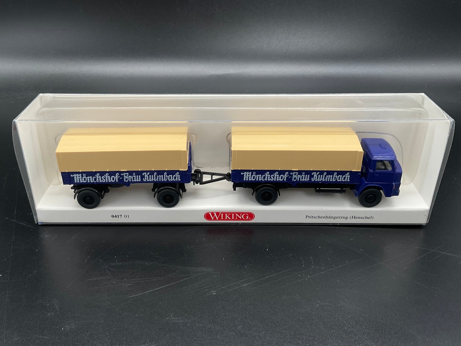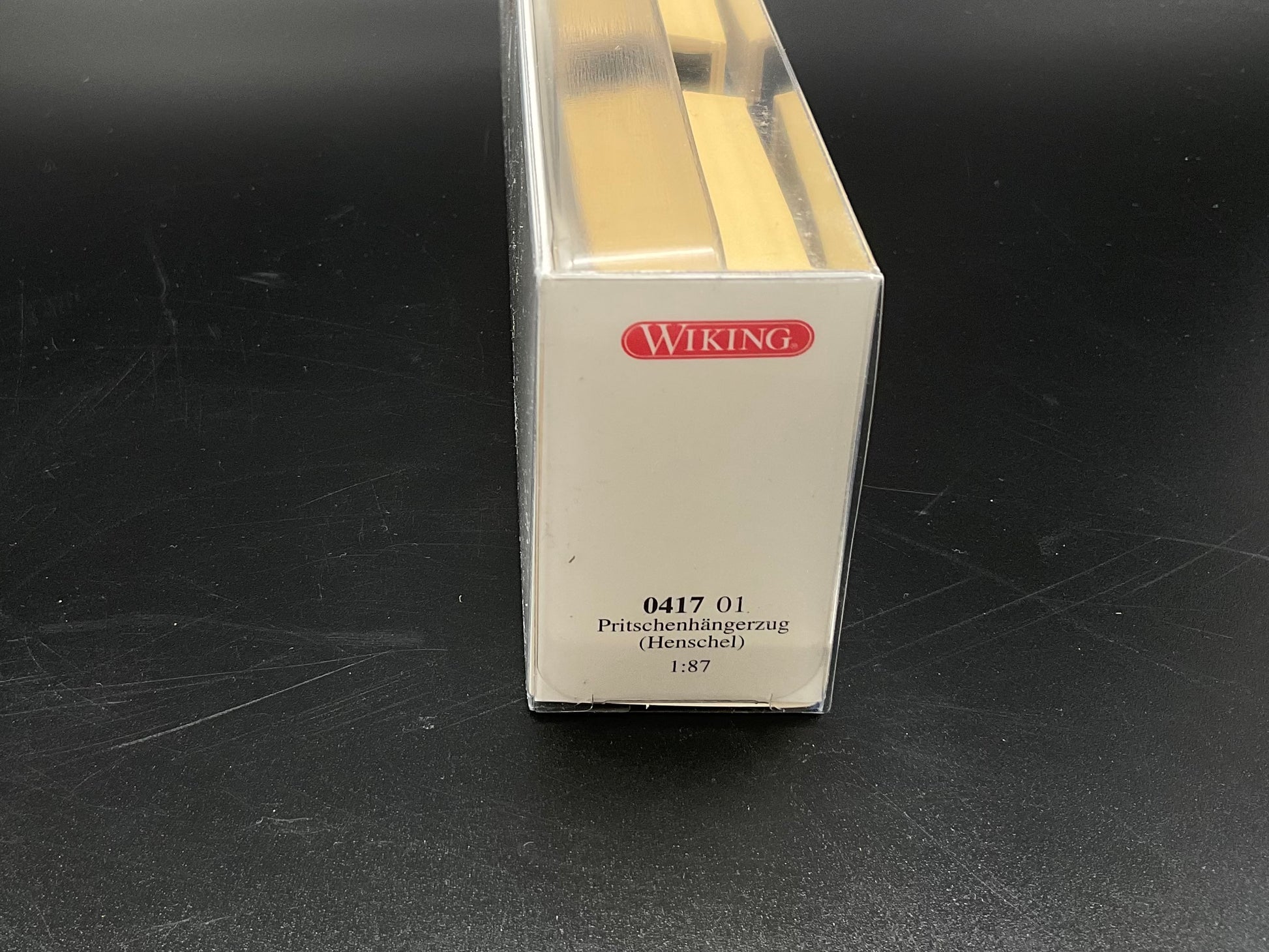 Es handelt sich hierbei um einmal ein Pritschenhängerzug mit der Modellnummer 0417 01. Das Modell ist Original von Wiking und gebraucht. Zustand entsprechend den Bildern und Bilder dienen der Beschreibung.