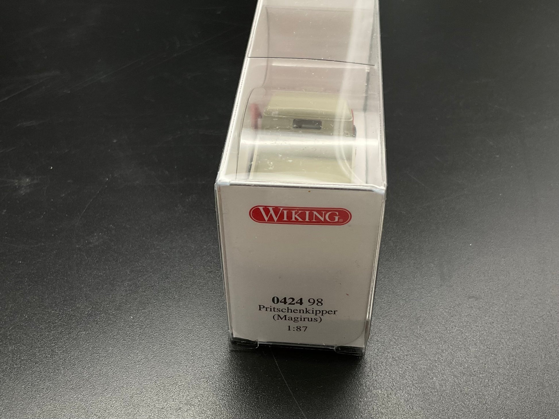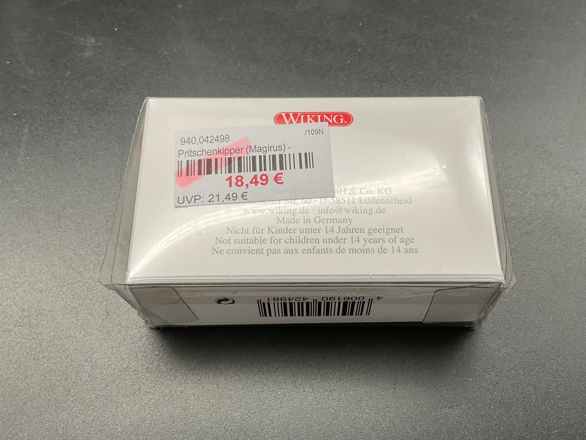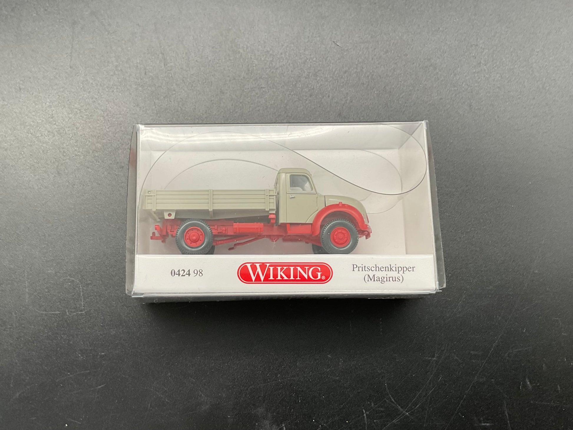 Es handelt sich hierbei um einmal ein Pritschenkipper mit der Modellnummer 0424 98. Das Modell ist Original von Wiking und gebraucht und weist Gebrauchsspuren auf. Zustand entsprechend den Bildern und die Bilder dienen der Beschreibung.