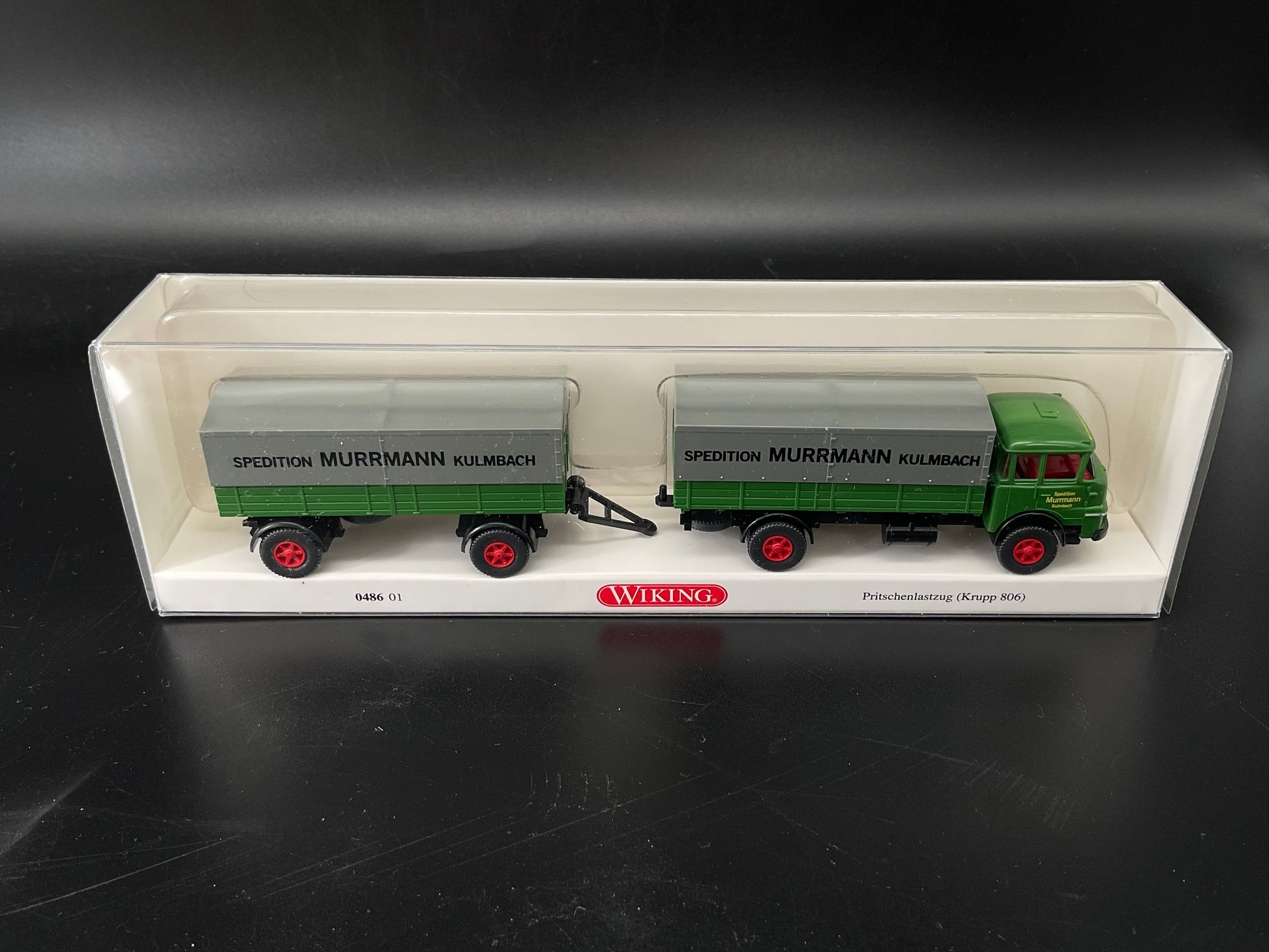 Es handelt sich hierbei um ein Pritschenlastzug mit der Modellnummer 0486 01. Das Fahrzeug ist Original von Wiking und gebraucht. Daher weist es kleine Gebrauchsspuren auf. Zustand entsprechend den Bilder und die Bilder dienen der Beschreibung.