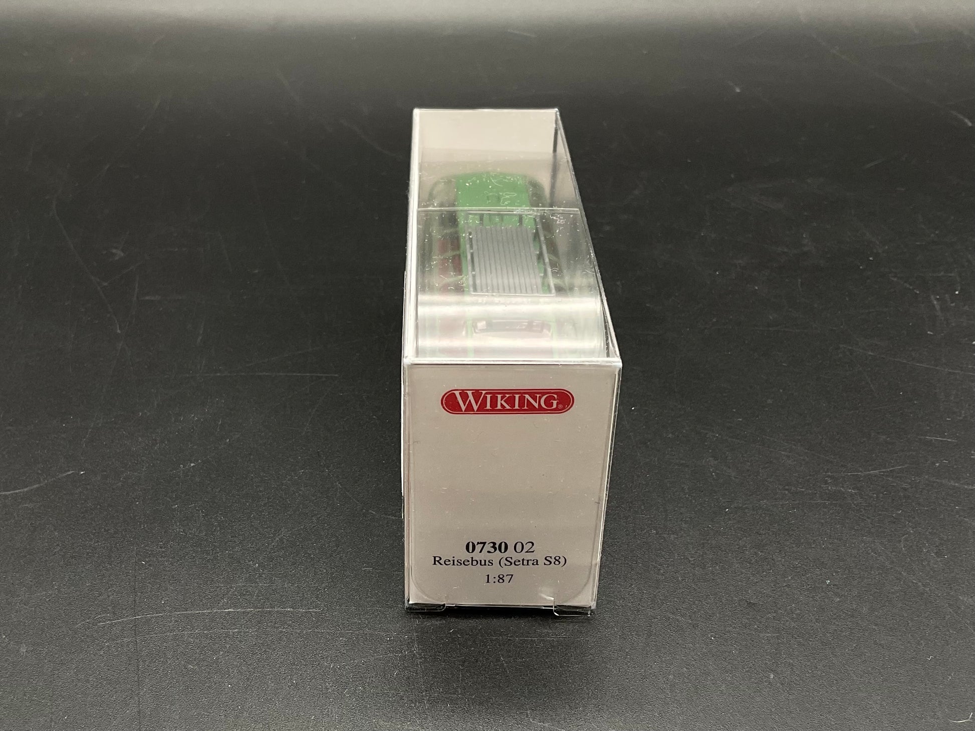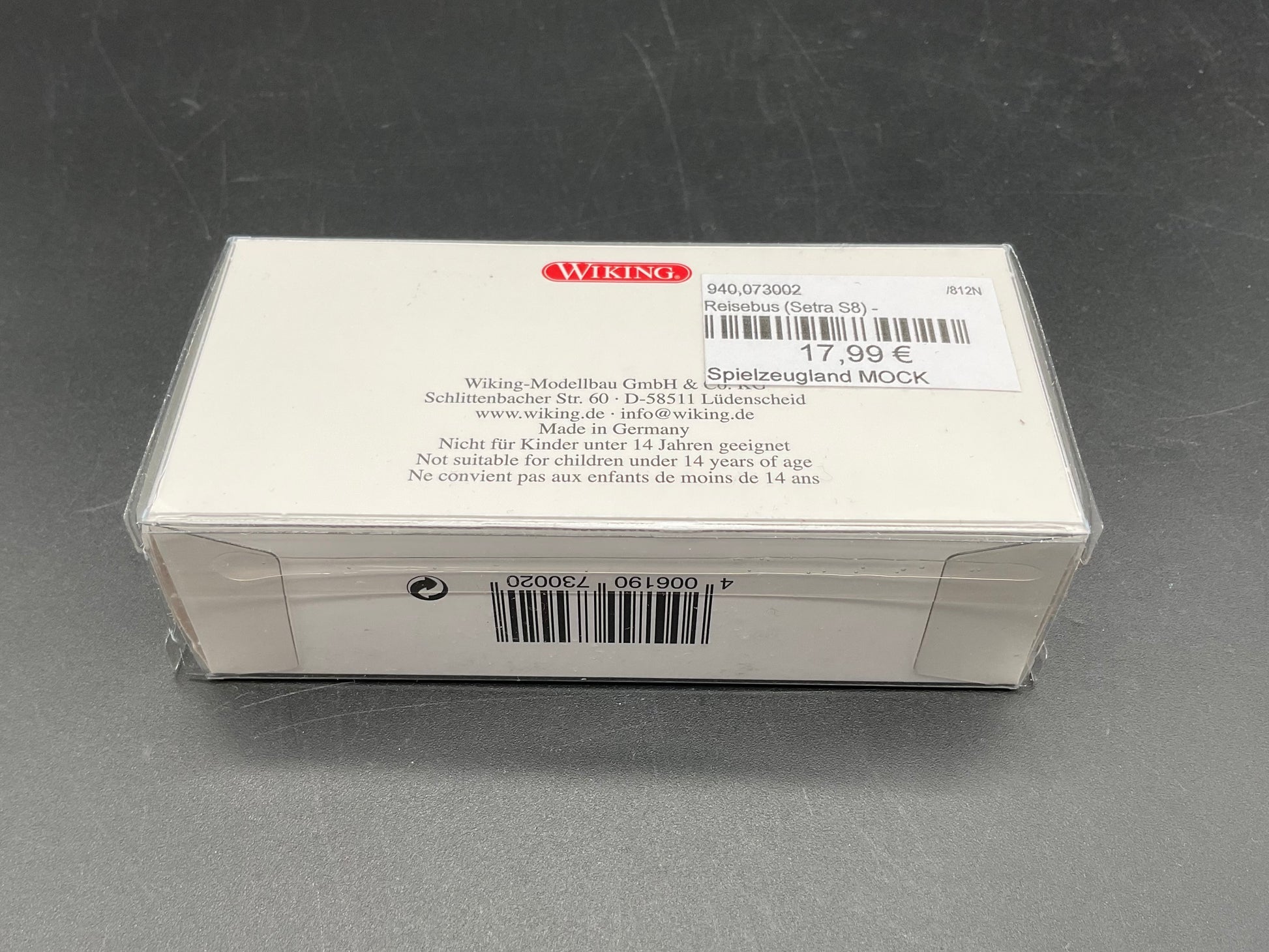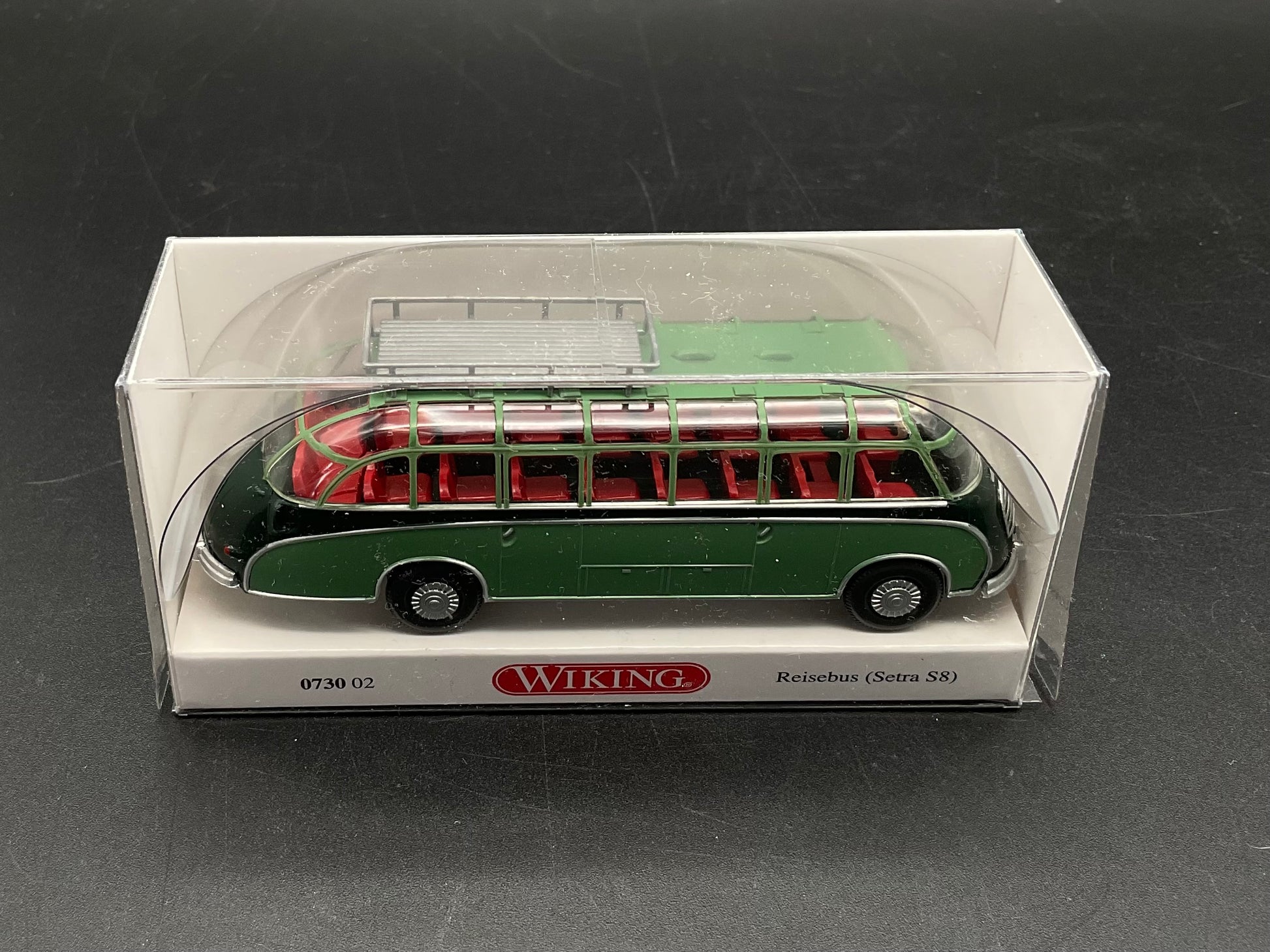 Es handelt sich hierbei um ein Reisebus von Setra S8 mit der Modellnummer 0730 02. Das Modellfahrzeug ist gebraucht und Original von Wiking. Es weist leichte Gebrauchsspuren auf und der Zustand ist entsprechend den Bildern. Zusätzlich dienen die Bilder der Beschreibung.